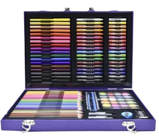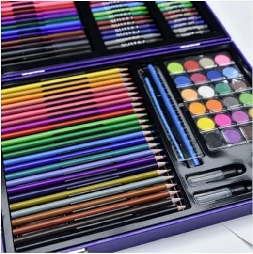 COMPLETE ART SET: 128-piece comprehensive art supplies including watercolours, oil pastels, and coloured pencils in an organised carrying case