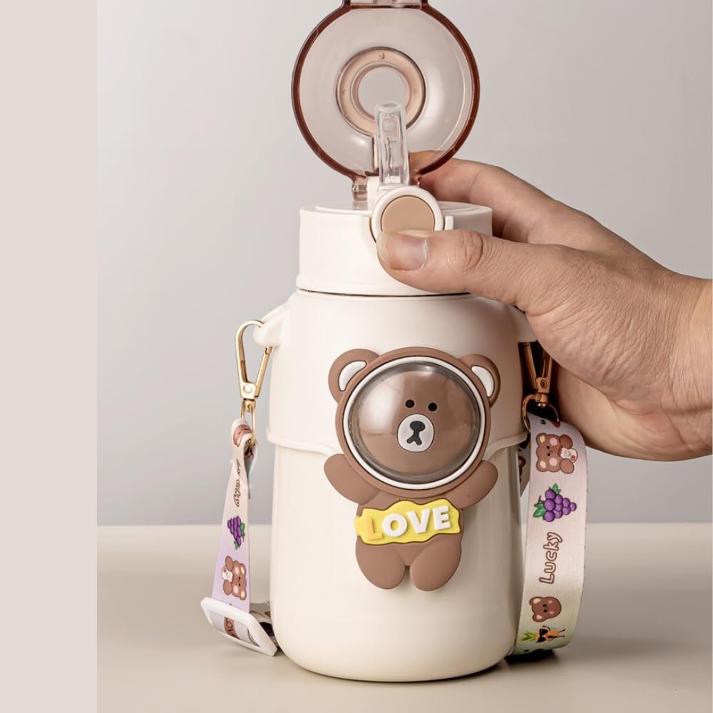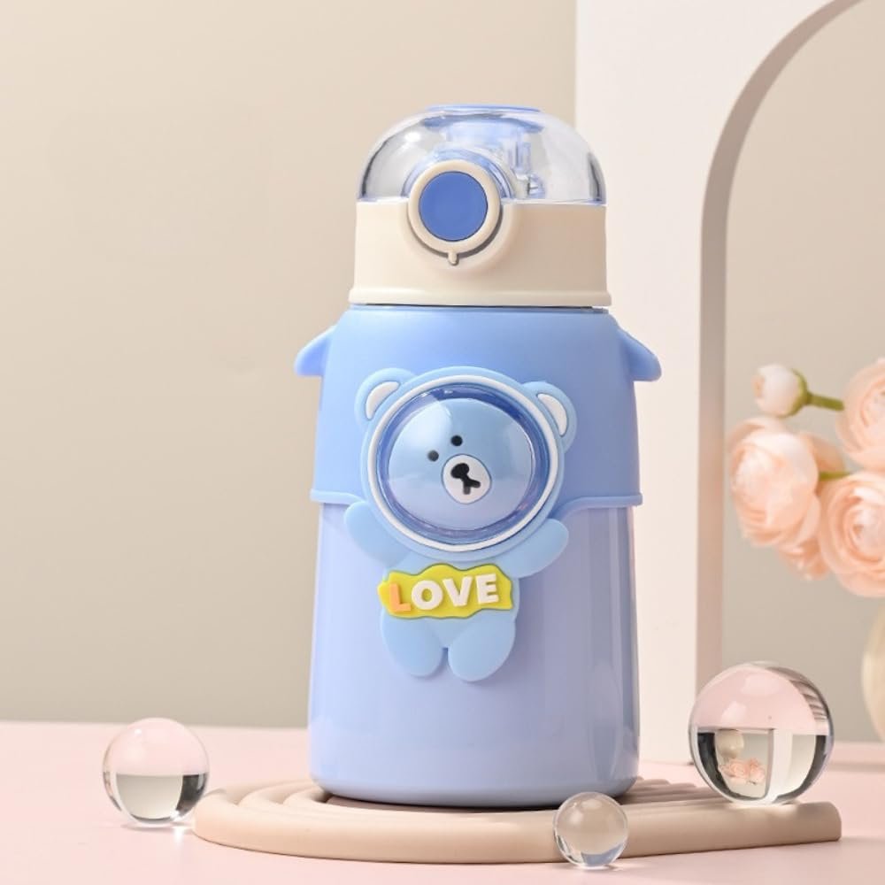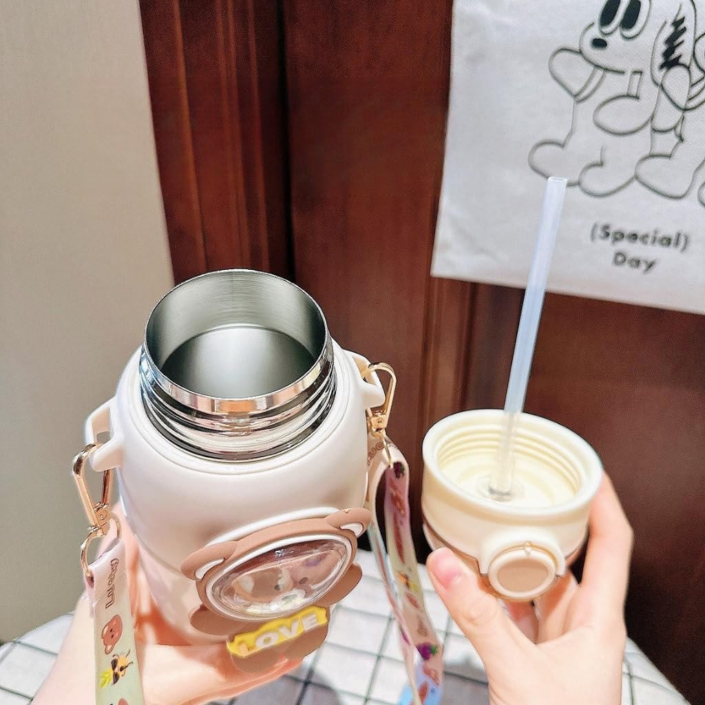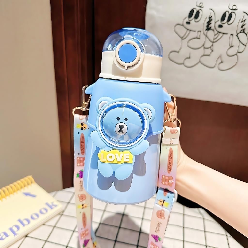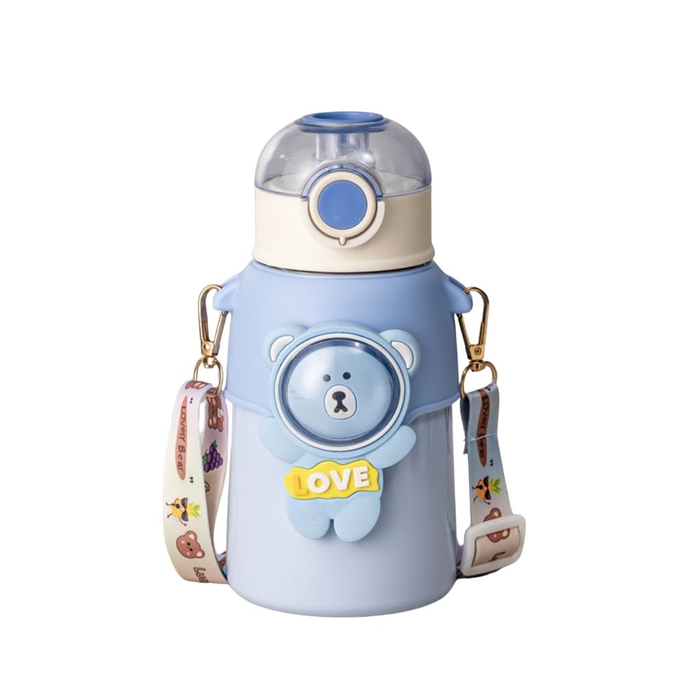 500ml Stainless Steel Sipper Water Bottle with Straw & Carry Strap, Leakproof, BPA-Free Sipper Bottles for School Kids, Boys, Girls, Travel, Picnic & Daily Hydration. (Blue)