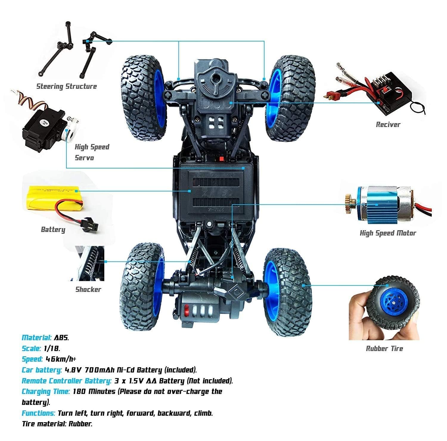 ❤Powerful Speed: Installed with double strong power motors, the car can drive in high speed up to 20km/h. 15-20mins playing time with 3 hours full charged. it requires 4.8v 700mAh battery (Included), remote control requires 3 AA batteries (not Included)