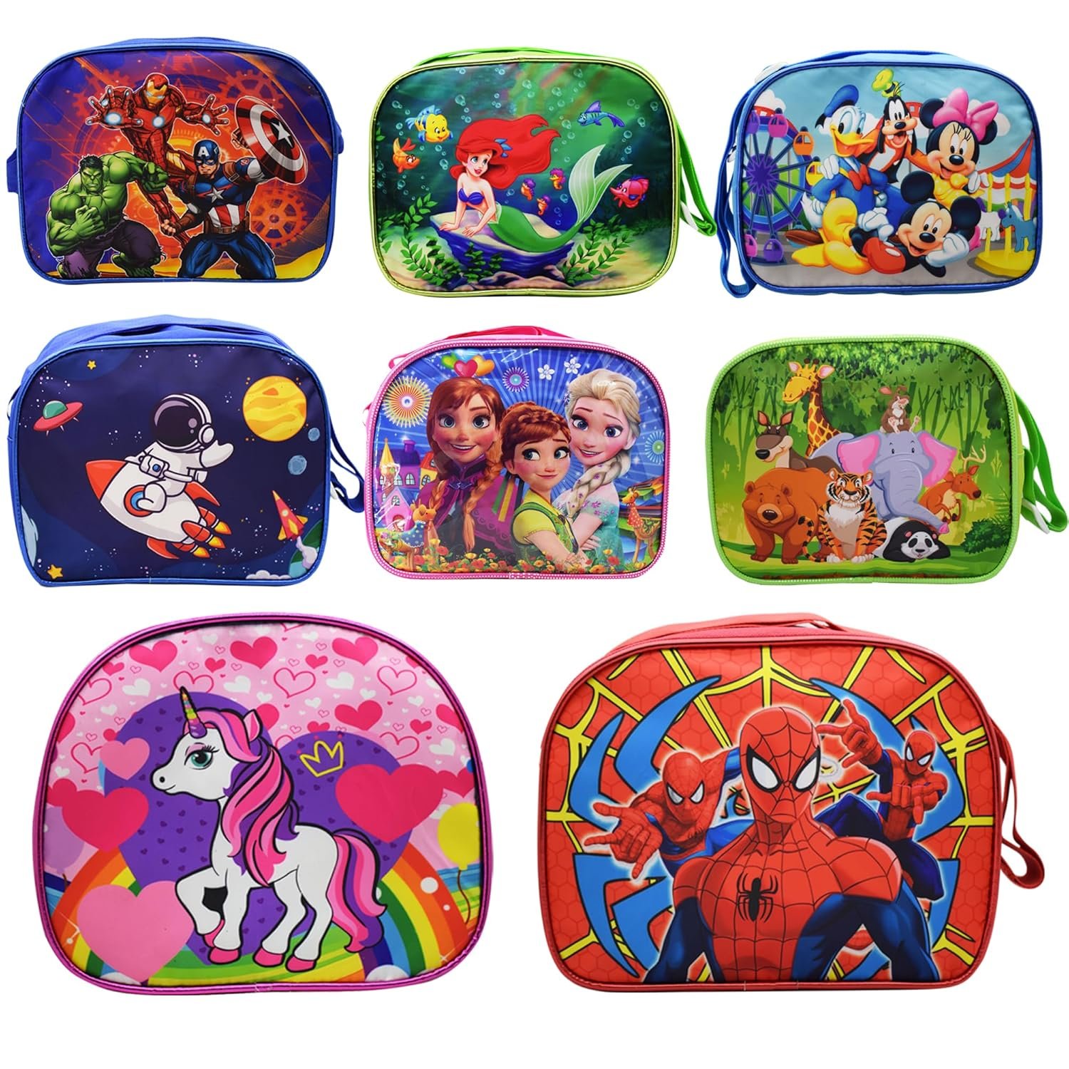 Asera Polycotton 8 Pcs Birthday Return Gifts Sling Bag/Picnic Bag Different Design Cartoon Theme Bag For Kids, Multicolor
