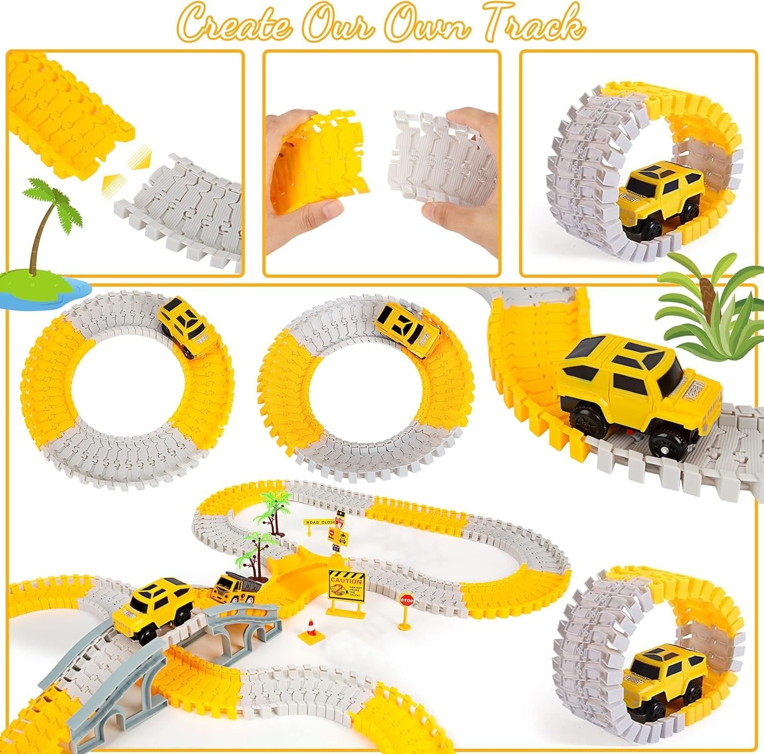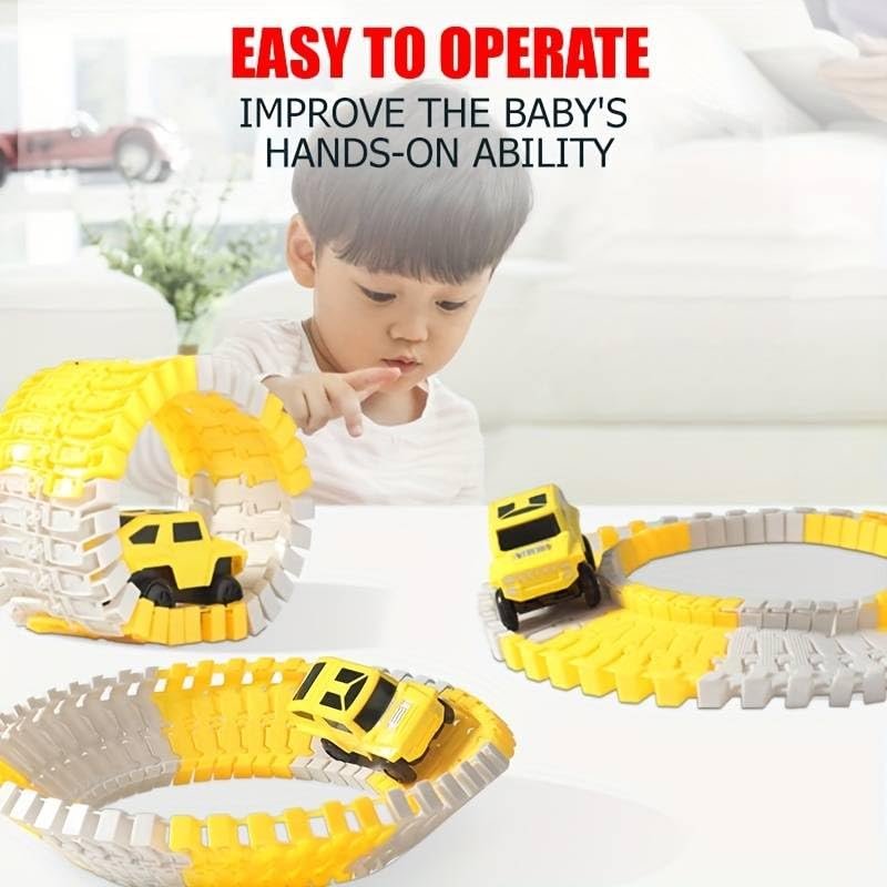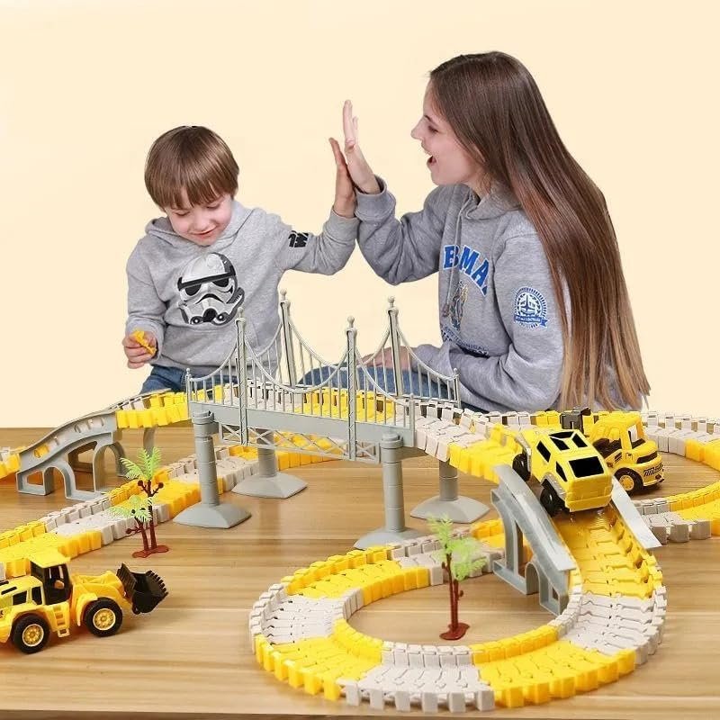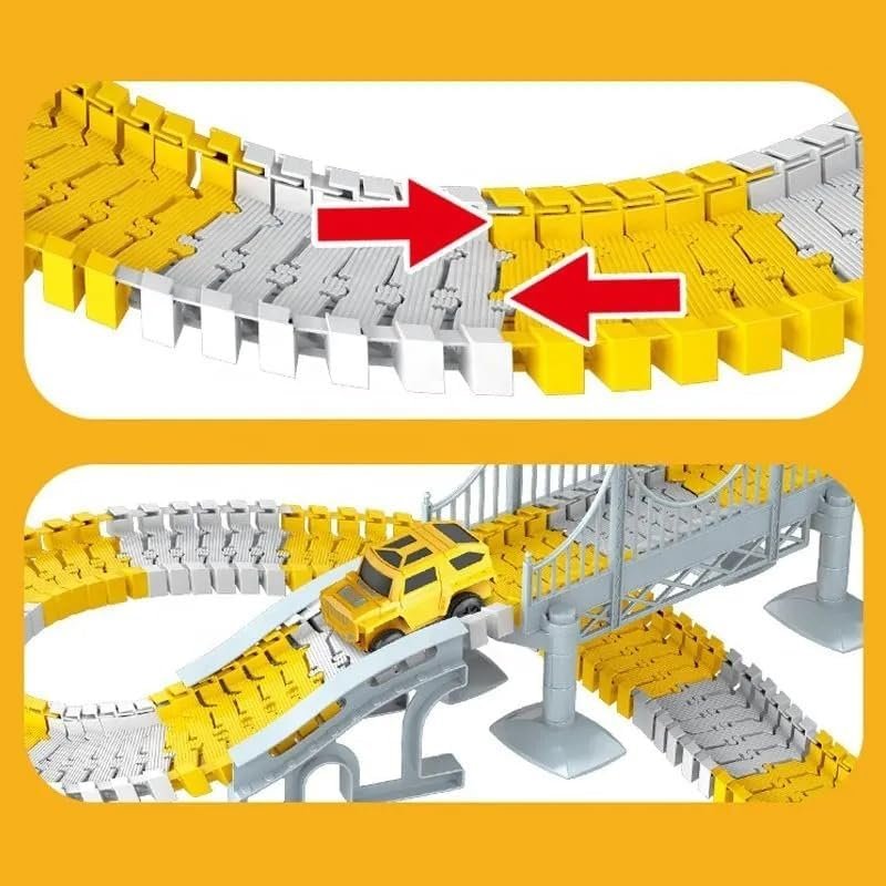 Unleash Your Creativity: Our dynamic track pieces can be easily snapped together or twisted, allowing for endless configurations. Children can design and build their own unique track worlds, this toy encourages imaginative play, helping kids explore different track layouts while developing problem-solving skills and spatial awareness.