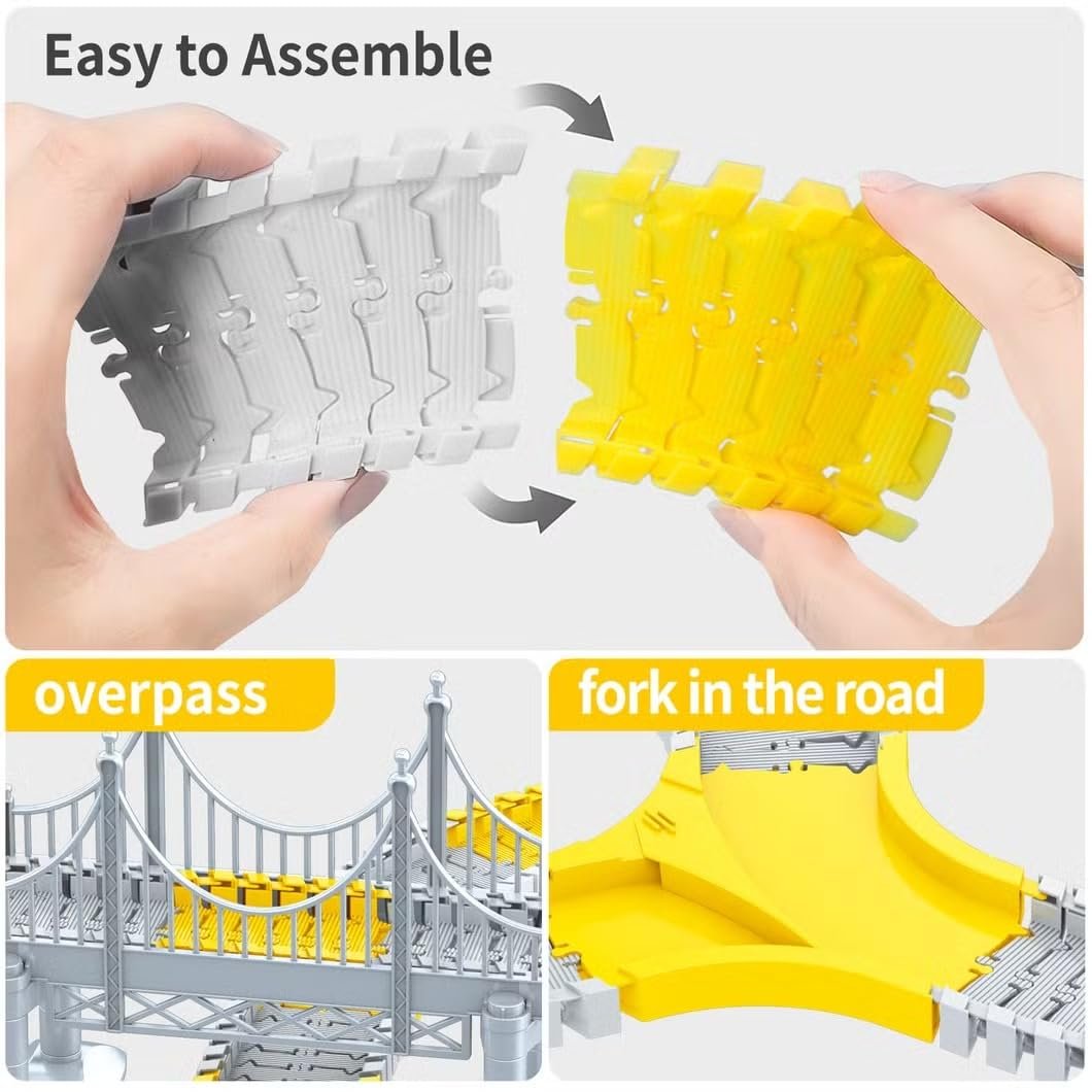 Creative Track Adventure: Open up a world of imaginative building! With flexible pieces snapping easily into place, kids can design winding routes, steep ramps, and exciting intersections. Start the car and watch it race across bridges, sharp turns, and unexpected twists. Every track setup offers a fresh challenge, encouraging endless creativity, hands-on play, and nonstop racing fun.