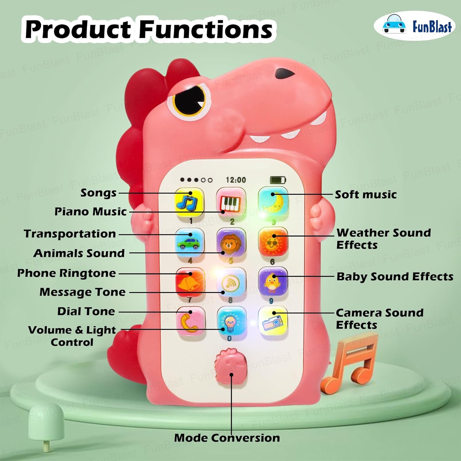 FunBlast cartoon musical mobile phone toy with music and light toy for toddlers. This mobile is colorful and amazing pattern which makes more attractive.