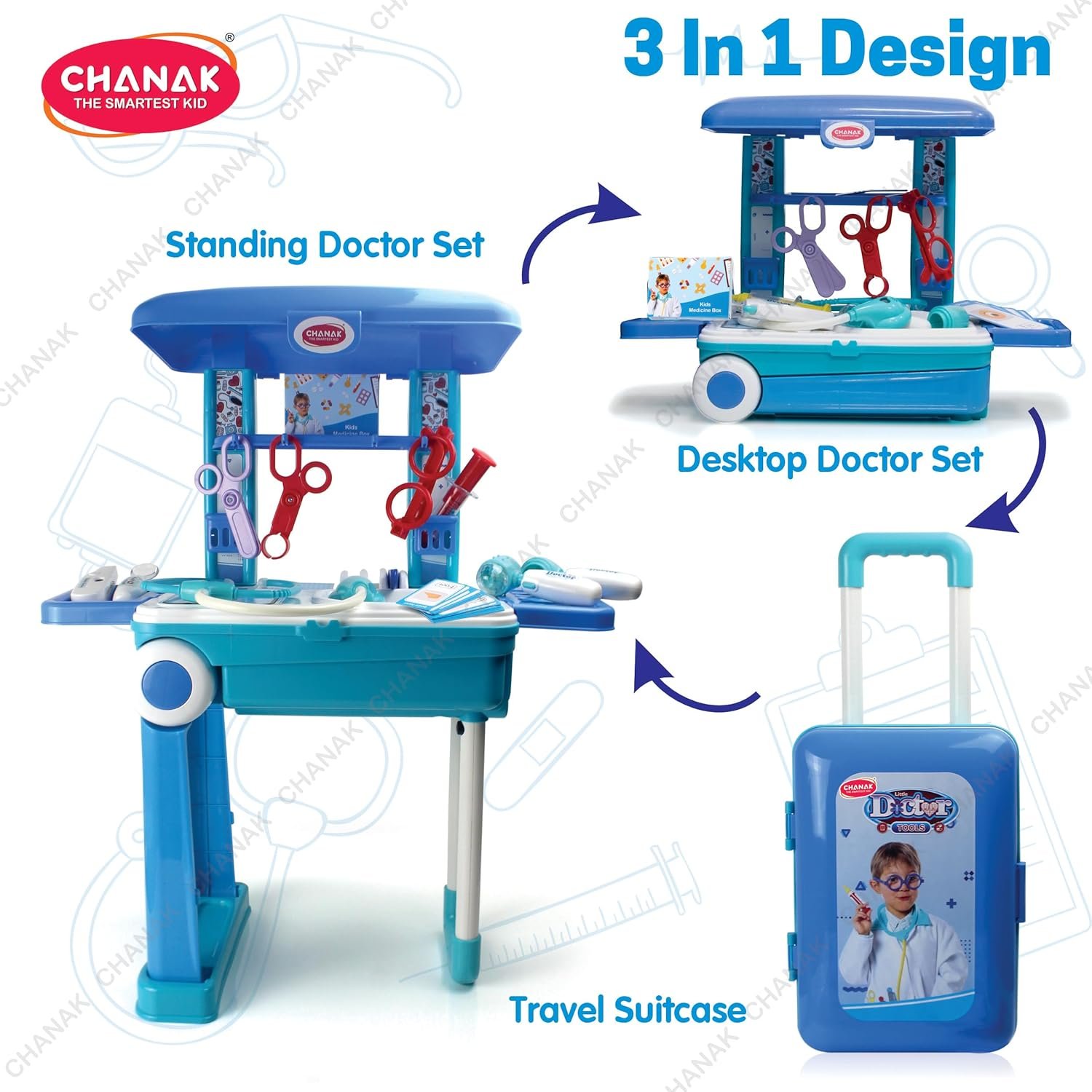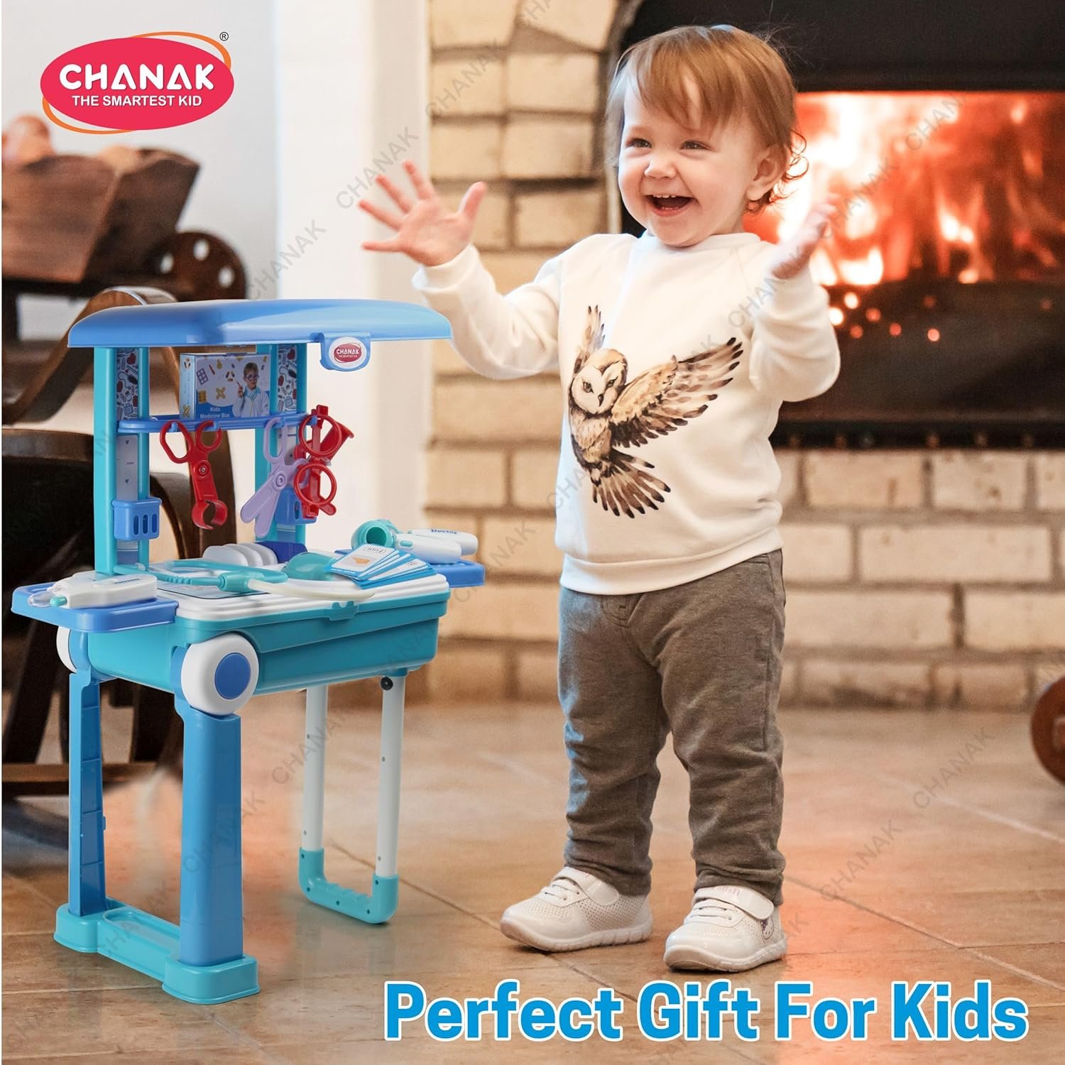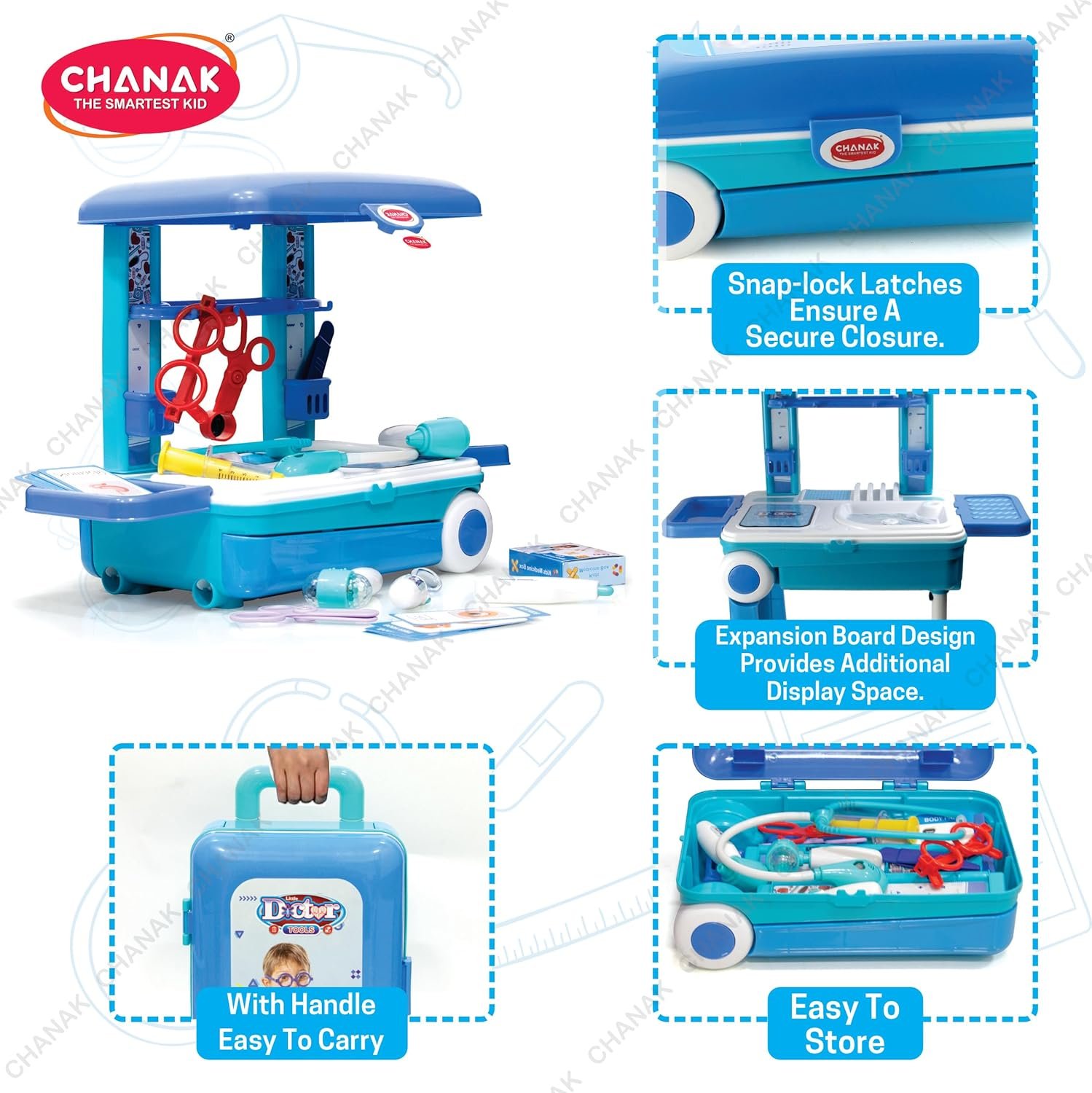 Chanak Premium Doctor Set Trolley for Kids with LED Light Instruments, Pretend Play Doctor Set Trolley for Kids Above 3 Years, Doctor Kit for Boys & Girls, BIS Approved. (Blue Trolley)
