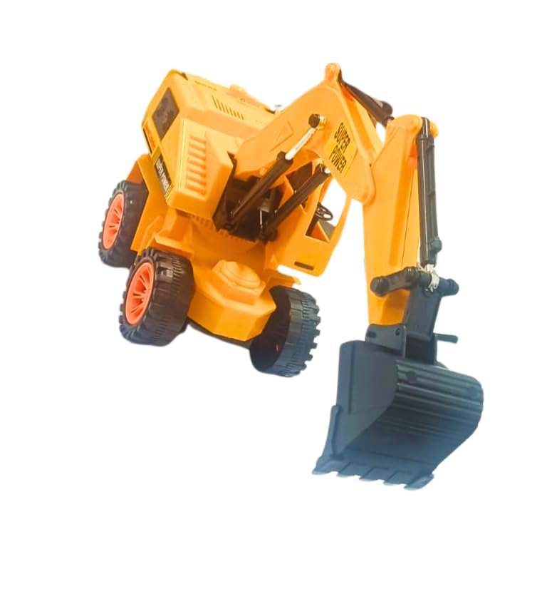 CONSTRUCTION DESIGN: Sturdy yellow shovel loader design with durable wheels and robust excavator arm for imaginative construction play
