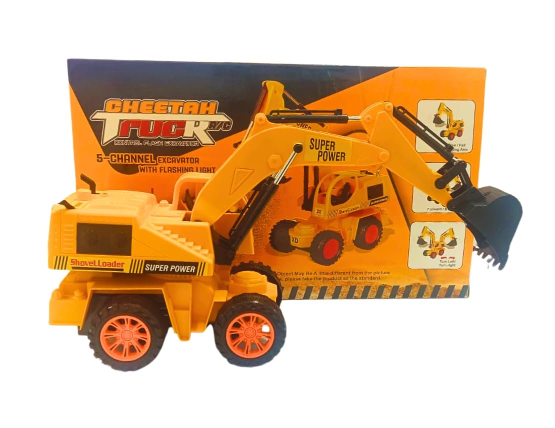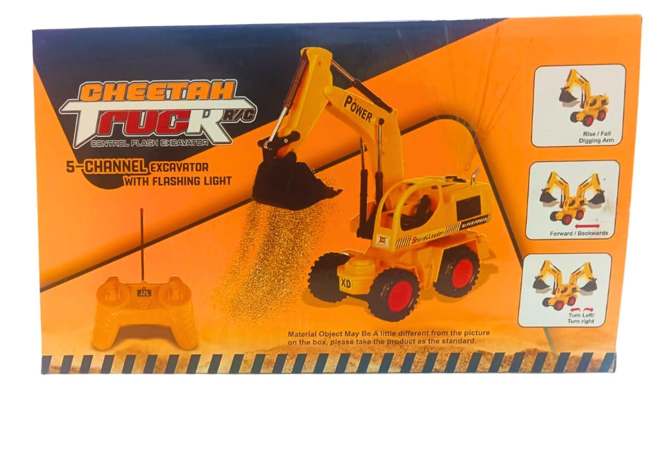 REMOTE CONTROL: 5-channel RC excavator with precise controls for forward/backward movement, turning left/right, and digger arm operation