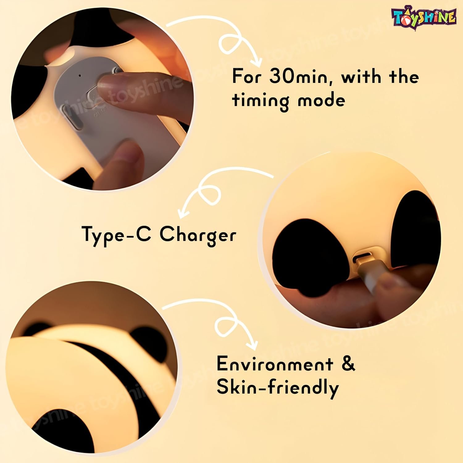 Cute Panda Design: The night light features a delightful Cute Panda shape, adding a touch of whimsy and charm to any room. Its adorable design is appealing to both children and adults, making it a perfect decorative piece.