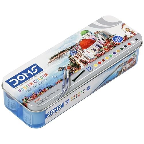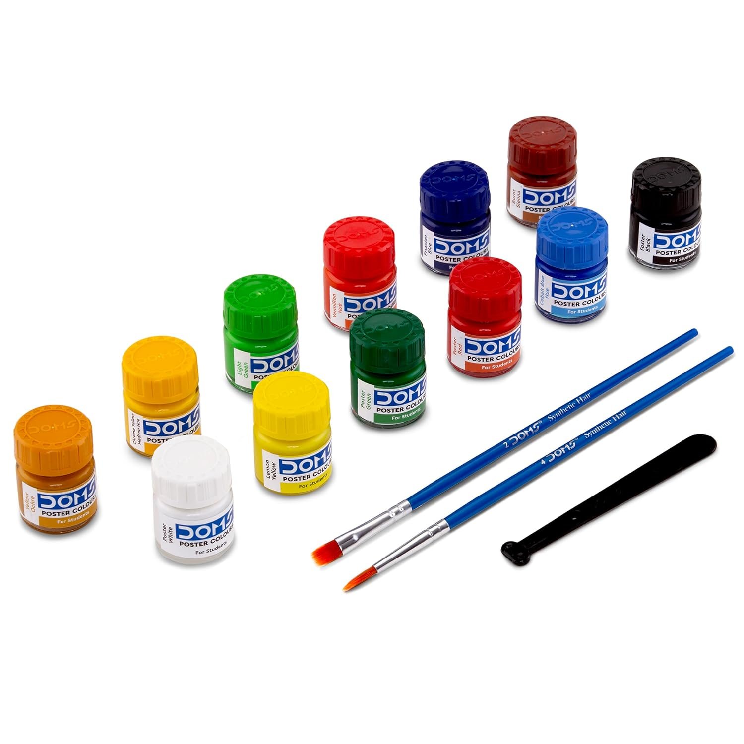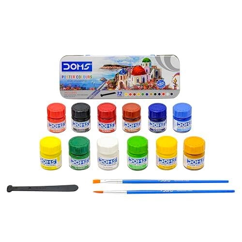 Doms 12 Shades Poster Colours | Rich & Vibrant Colors | Free Agigator & Brush Inside For Uniform Mixing | Non-Toxic & Safe For Childrens | Pack of 1