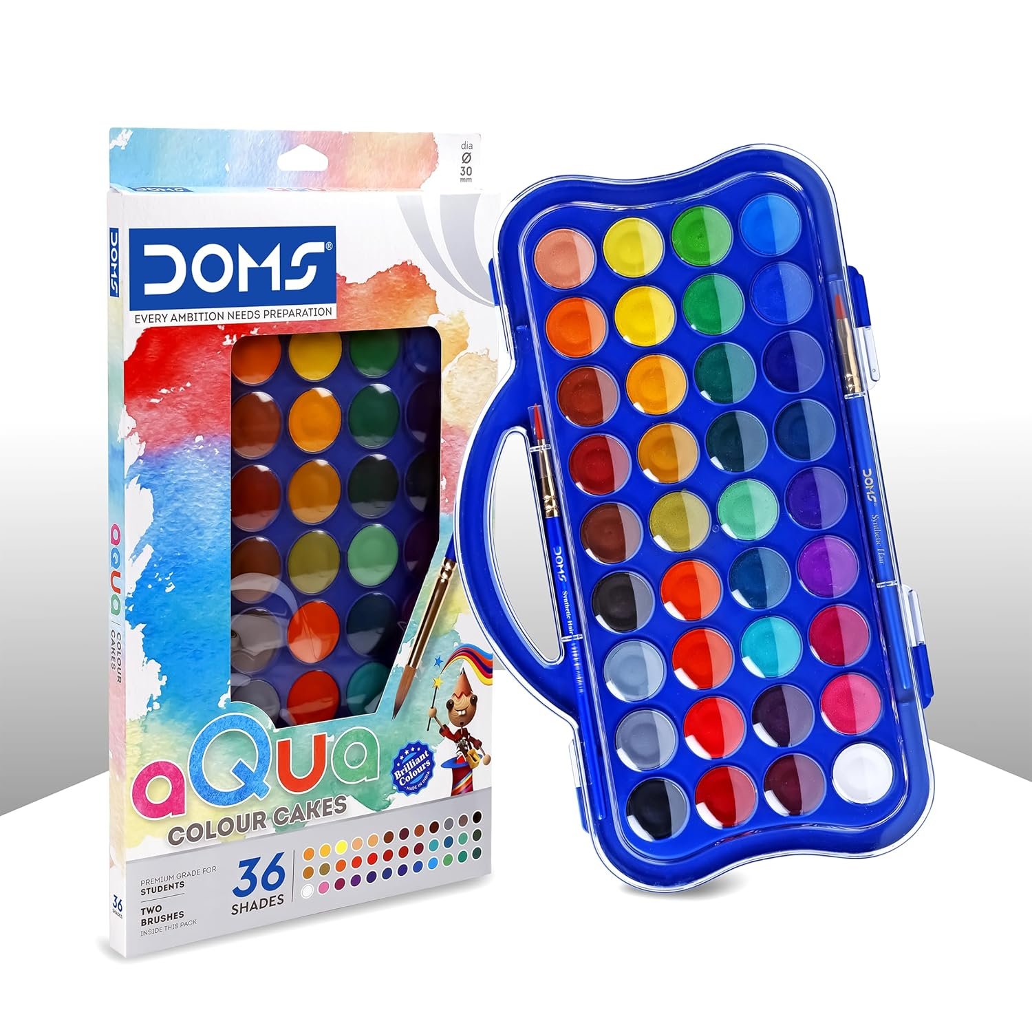 Doms 36 Shades 30mm Water Colour Cakes | Easy To Use Palette Lid | Organic Rich Colour Pigments | Free 2 x Brush Inside | Non-Toxic & Safe For Kids | Pack of 1