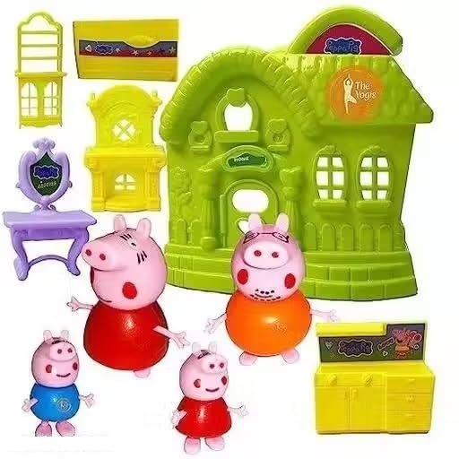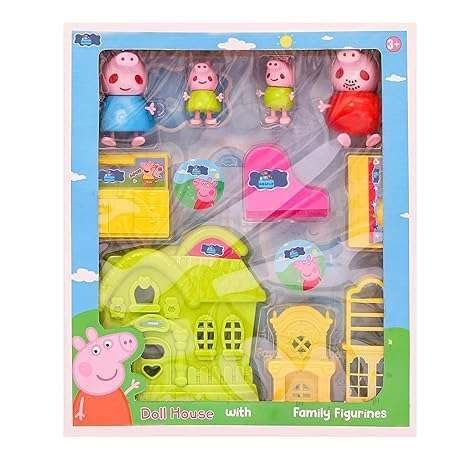 DT Play Crafters Deluxe Pig Playhouse Dollhouse with 4 Family Figurines and Accessories | Pretend Play Set for Kids | Birthday Gift Toy for Girls & Boys Age 3+