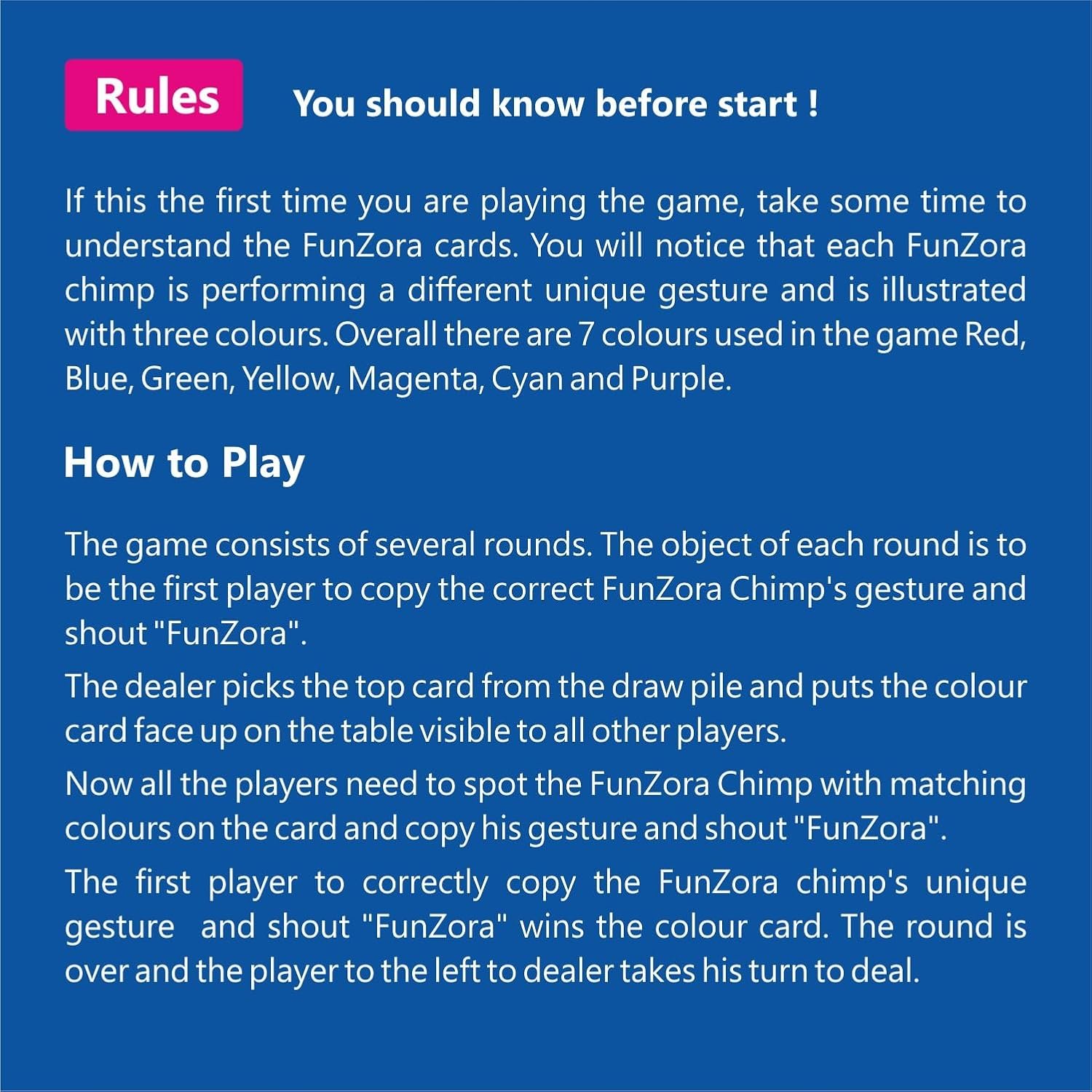 Players imitate the gesture of the chimp with the same colours as the colour card while calling out ‘Fundora’.