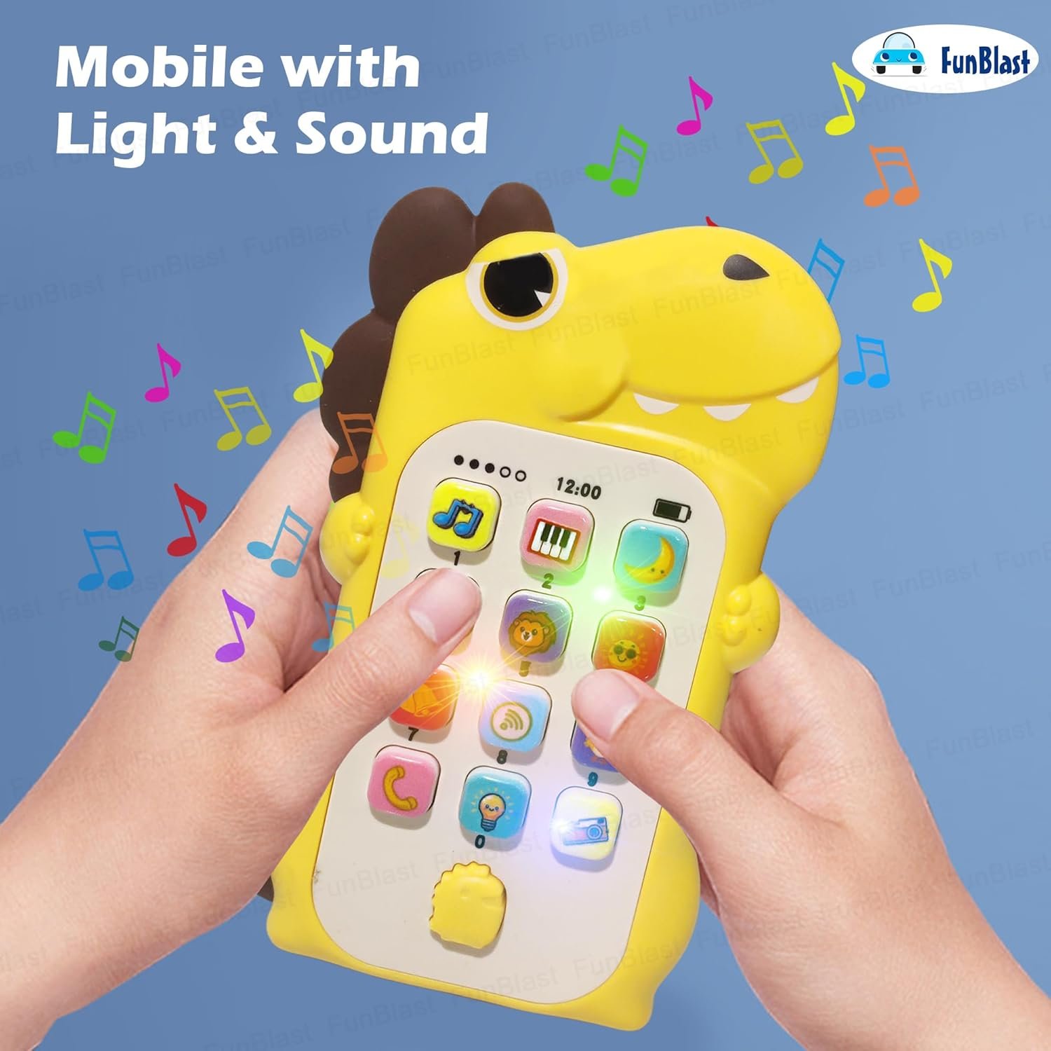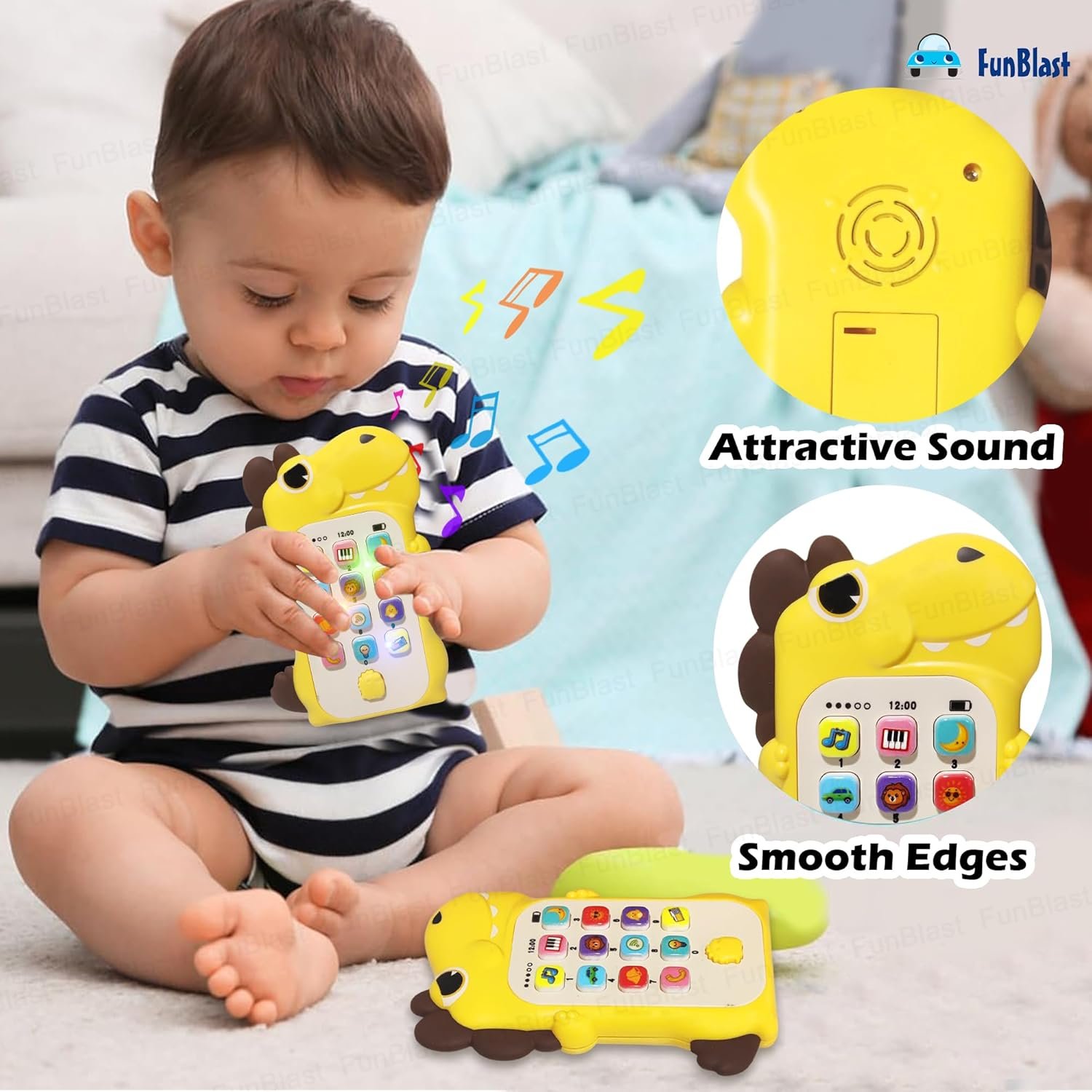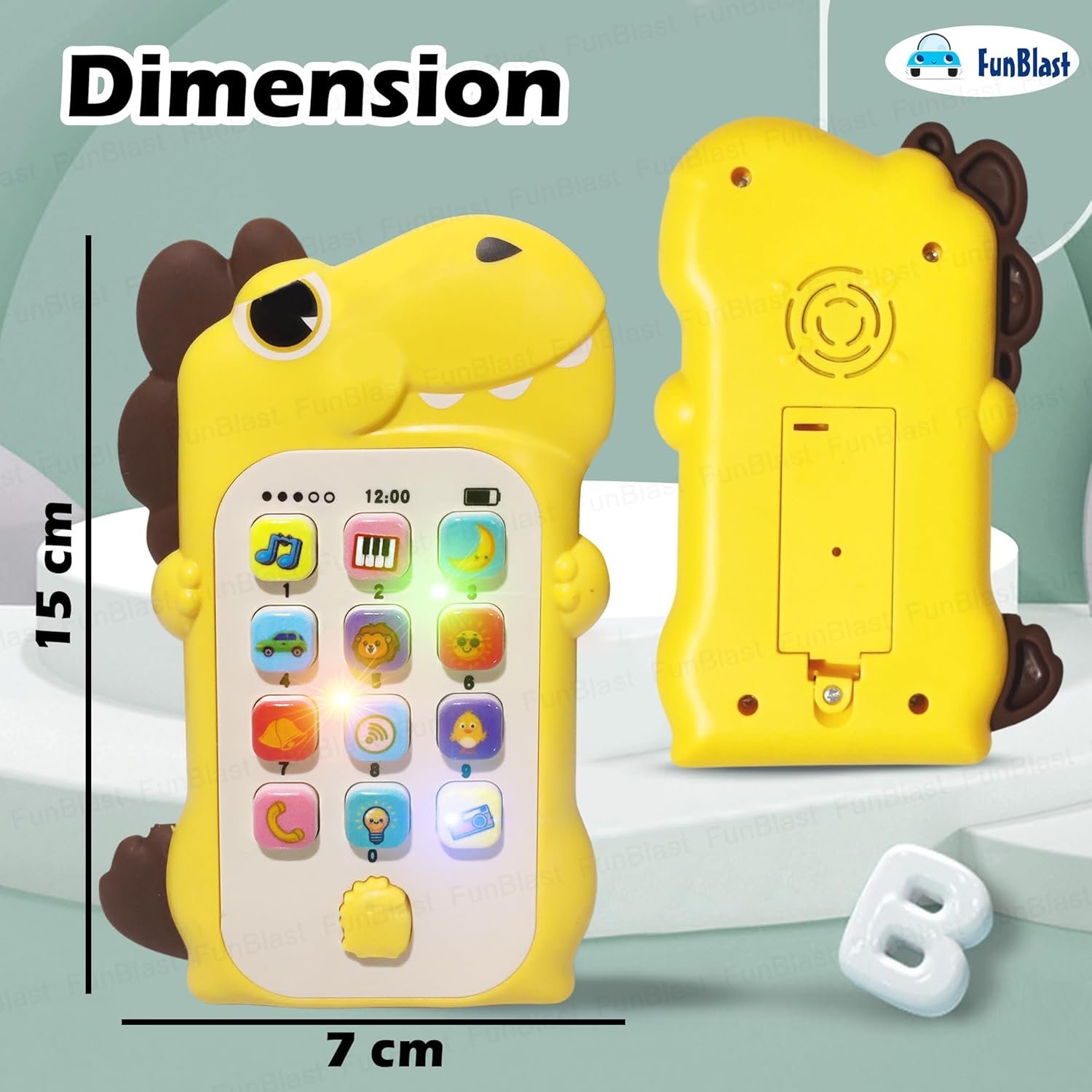 FunBlast Mobile Phone for Kids, Cute Dinosaur Musical Mobile with Light & Sound Toys for Babies | Educational Toys for Kids 3+ Years/Boys/Girls-1 Unit (Yellow)