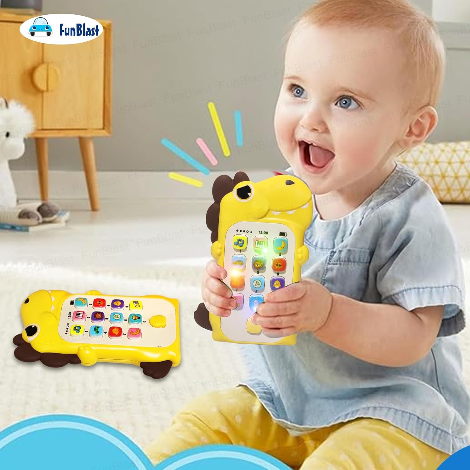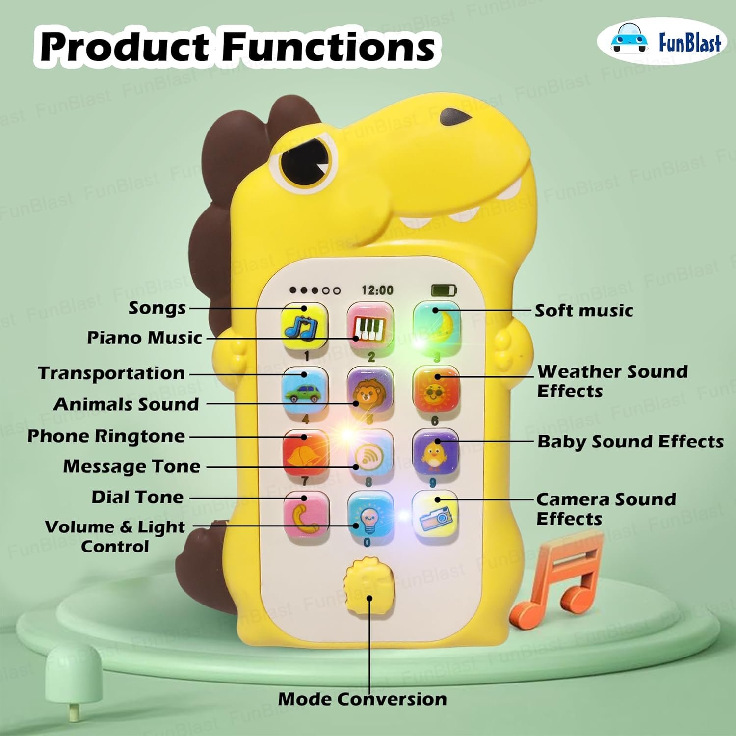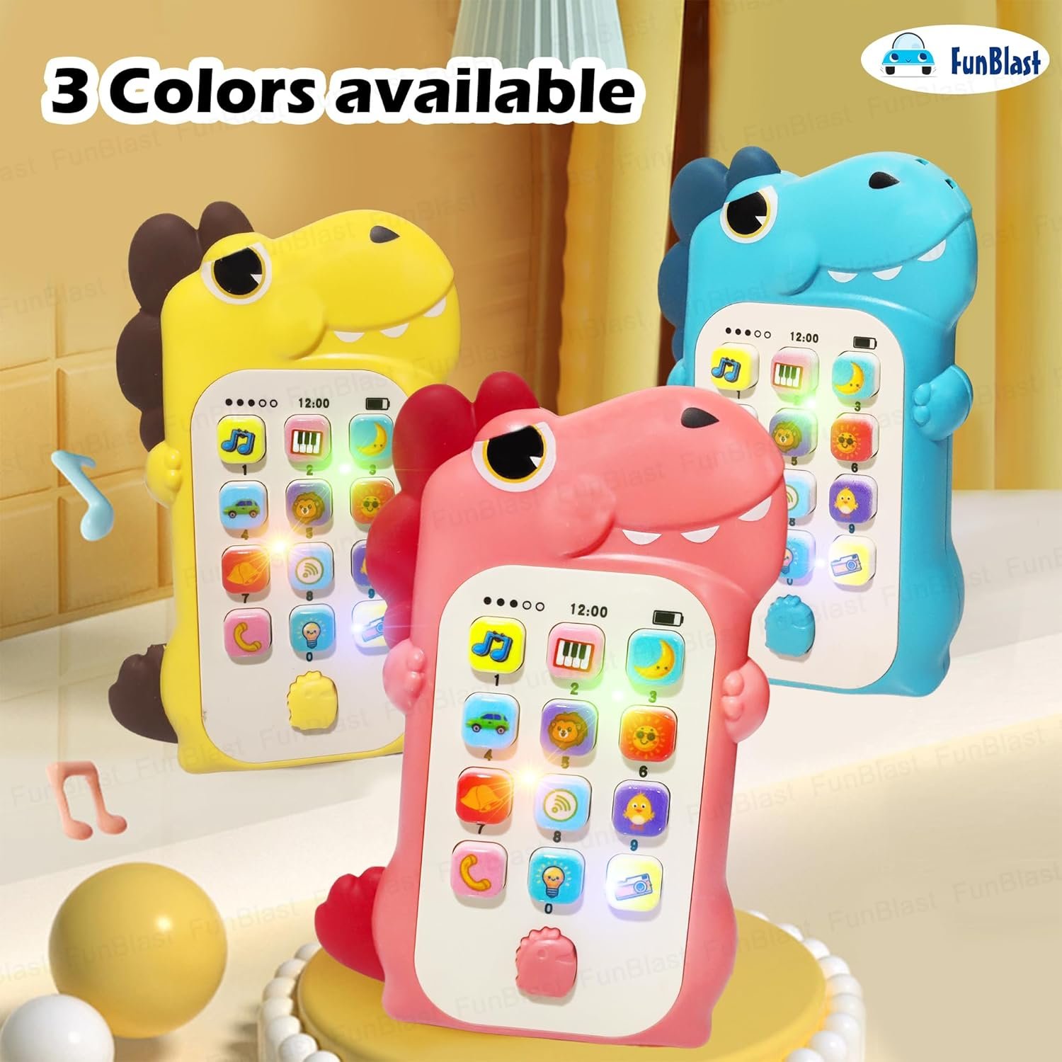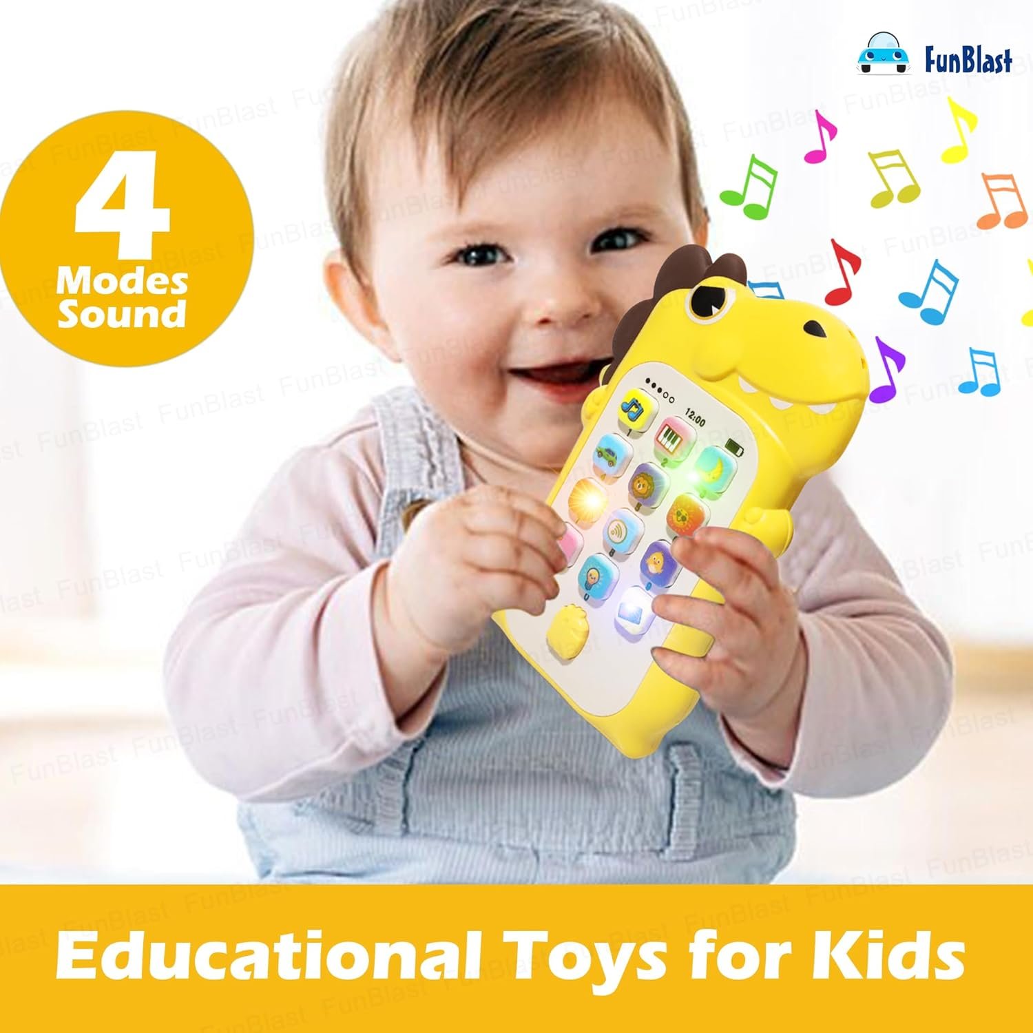 FunBlast Mobile Phone for Kids, Cute Dinosaur Musical Mobile with Light & Sound Toys for Babies | Educational Toys for Kids 3+ Years/Boys/Girls-1 Unit (Yellow)