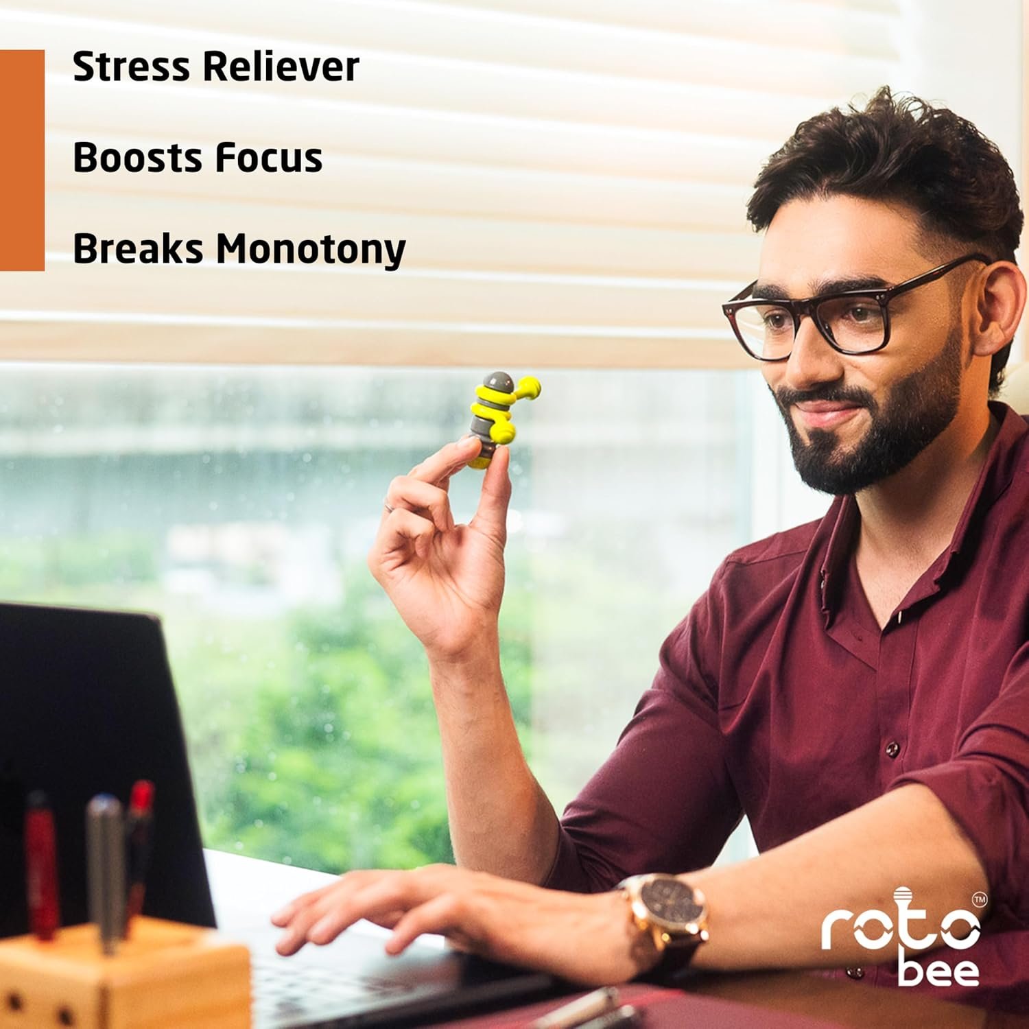 STRESS RELIEF & UNIQUE FIDGET TOY : Girgit Toys RotoBee is an innovative fidget spinner that helps relieve stress, anxiety, ADHD, autism, monotony, hyperactivity, and restlessness through sensory play. A fun and engaging toy for adults, kids, and teens.