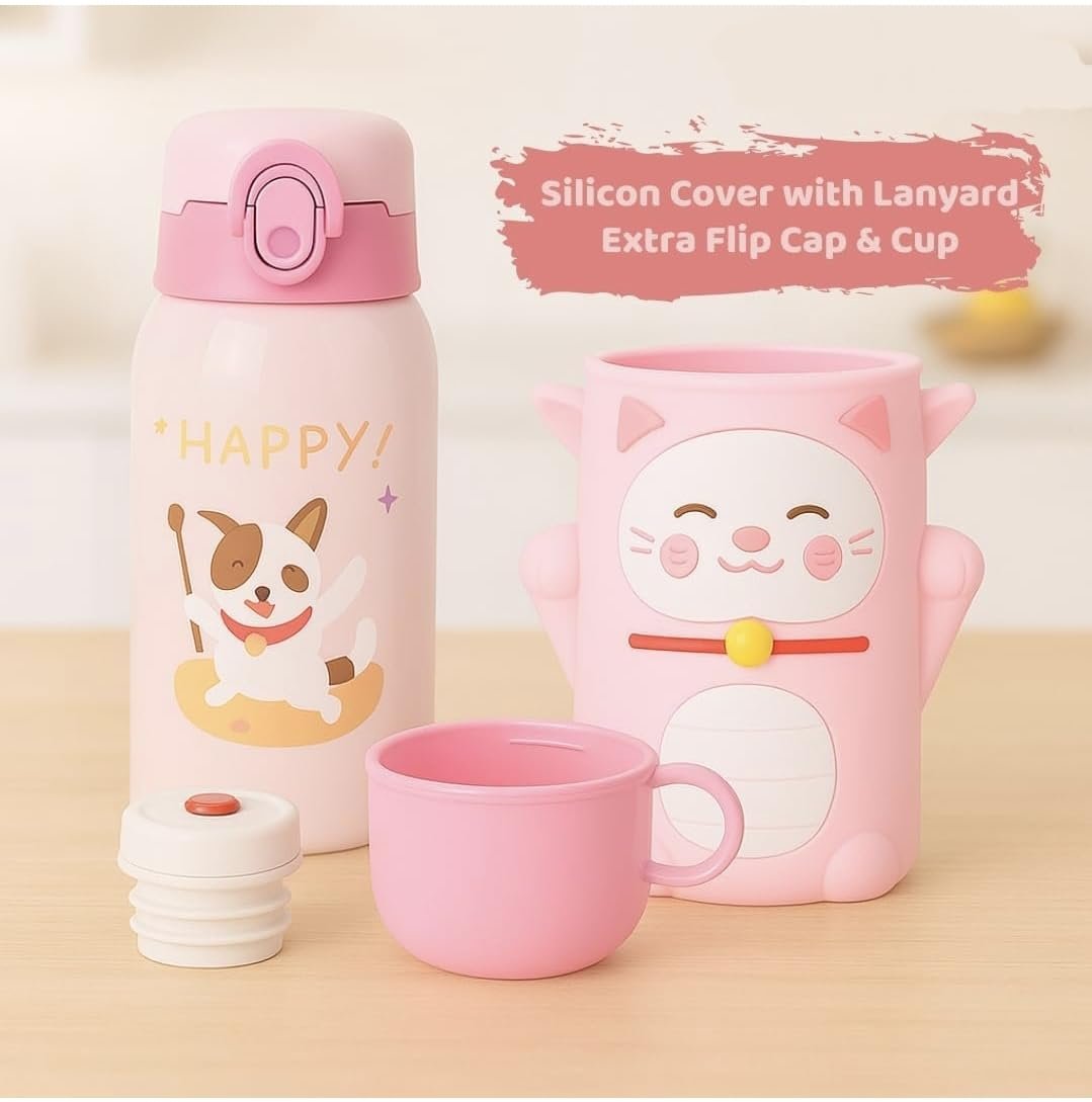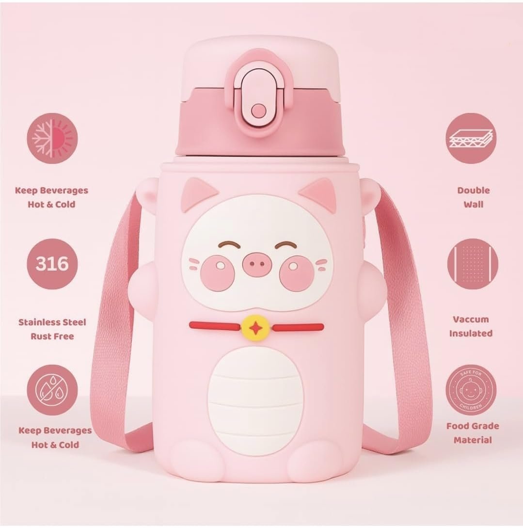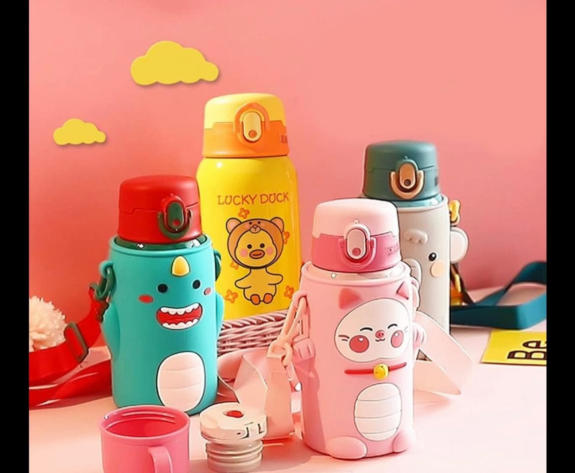Kid-Friendly Design: Adorable cartoon designs on a durable stainless steel body with a protective silicone sleeve making it attractive and safe for little hands.
