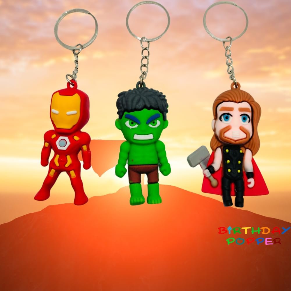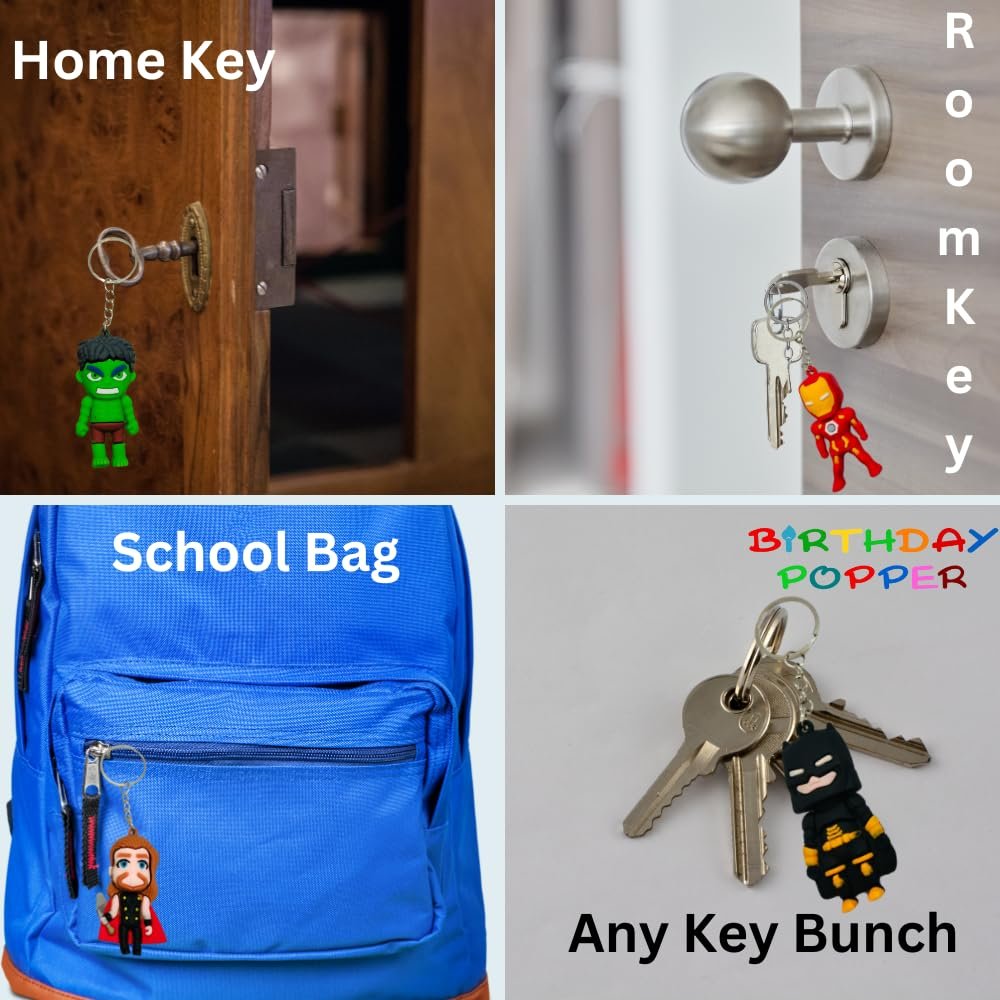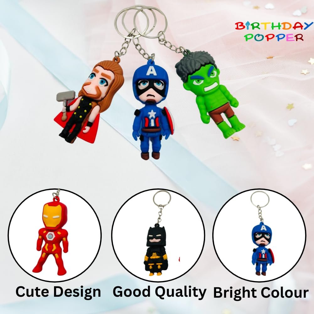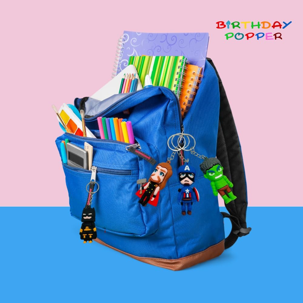 Superhero Theme Keychains: Includes a set of 12 keychains featuring an assortment of beloved superheroes like Iron Man, Hulk, Thor, Captain America, and Batman, all in vibrant colors that kids will adore!