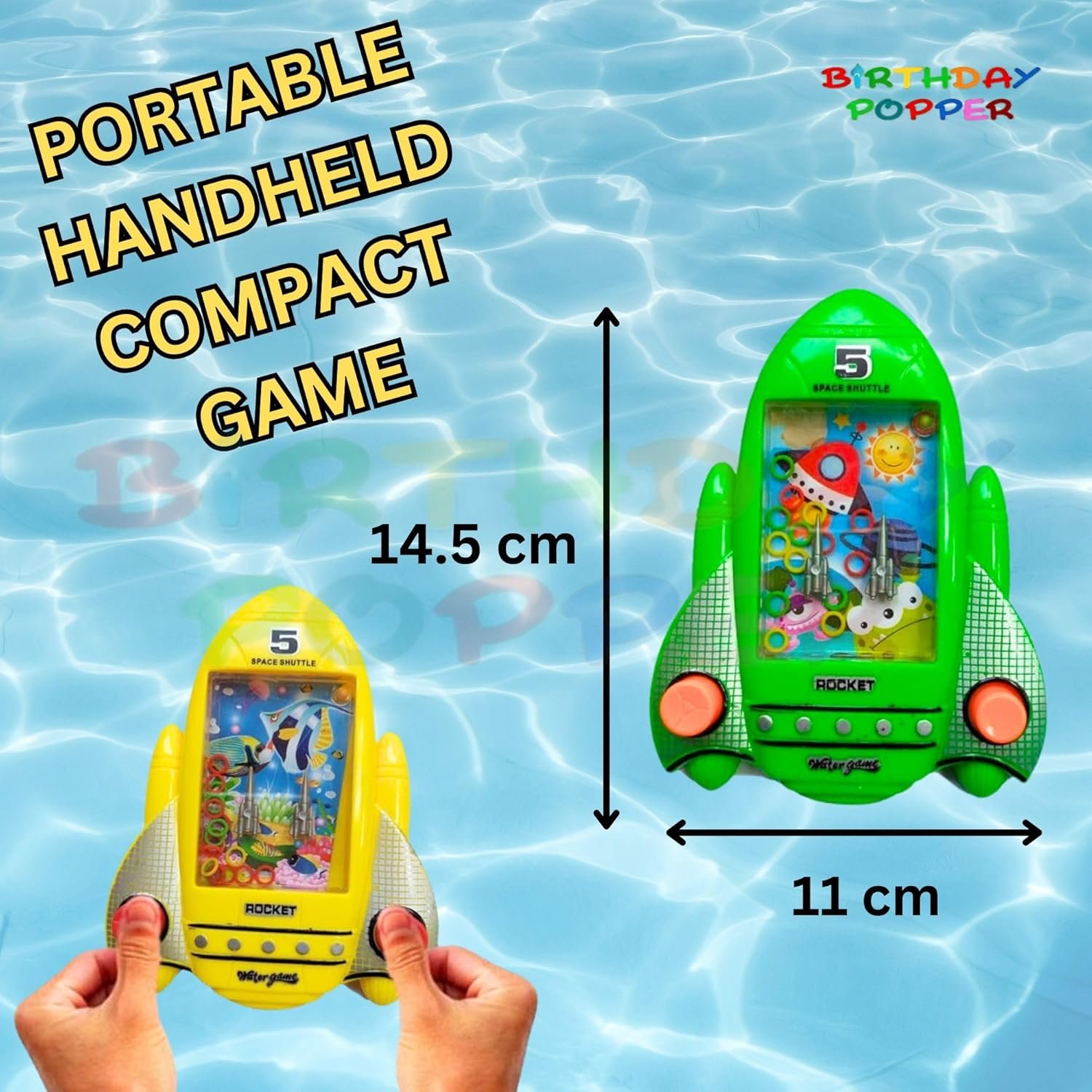 RING TOSS WATER TOY: This set includes 10 rocket-shaped toys in assorted colors like green, orange, yellow, and red, each measuring 11 x 14.5 x 2 cm, perfect for captivating kids and ensuring fun playtime!