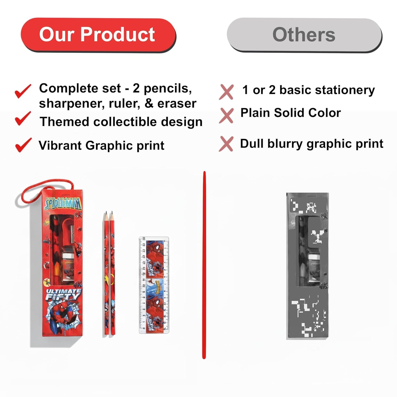 BEST RETURN GIFTS FOR BIRTHDAY PARTY FOR KIDS- This stationary sets is pack of 12 sets. There are 5 sets of stationary in each individual pack for kids- boys & girls of which 1 set has 2 pcs of Pencil, 1 eraser, 1 sharpener, 1 ruler. These are the perfect fun toys for kids and kids love these birthday return gifts for kids in bulk for giving as return gifts for kids in birthday party. These return gifts for girls and boys looks very beautiful and have many usages for our playful kids. Each birthday return gifts for kids 8-10 years is covered in beautiful packaging, bright and colorful. kids return gifts for birthday comes with beautiful outer packaging with kid’s favorite cartoons.