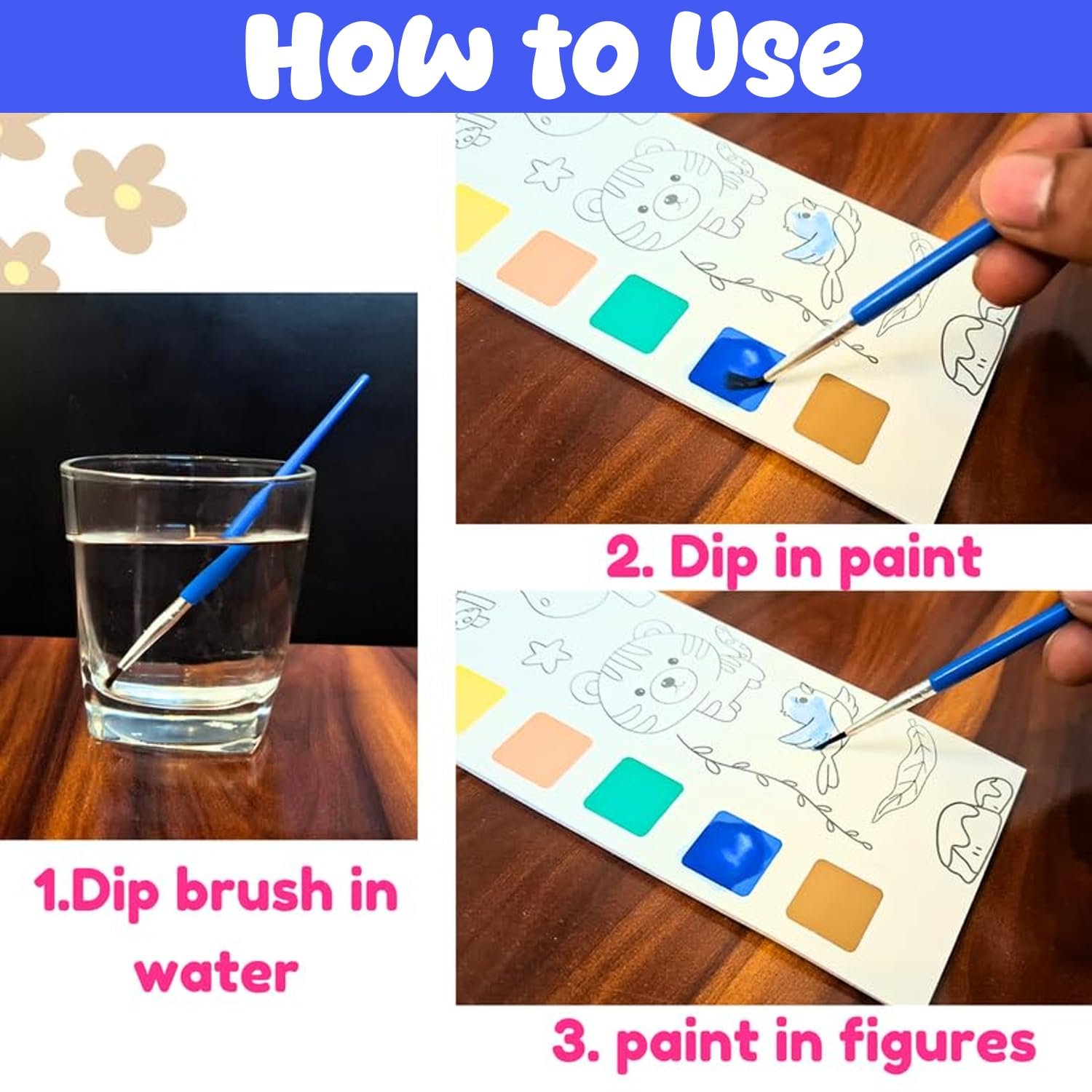 Eco Friendly Coloring books For return Gifts for birthday party for kids- The pack comes with 6pcs of water color painting sheets100% safe for children and adults for goody bags for return gifts for kids. each books consists of 12 sheets. This small kids return gifts for birthday bag is very usable and fun among children as they can sit and do DIY by themselves. These books in goodie bags are best gift for birthday return gifts for kids in bulk. Its a unique return gift, return gifts for birthday party for kids, birthday return gifts for kids as each page of this painting book for kids has painting color set embedded. So its a compete Colouring book set for kids