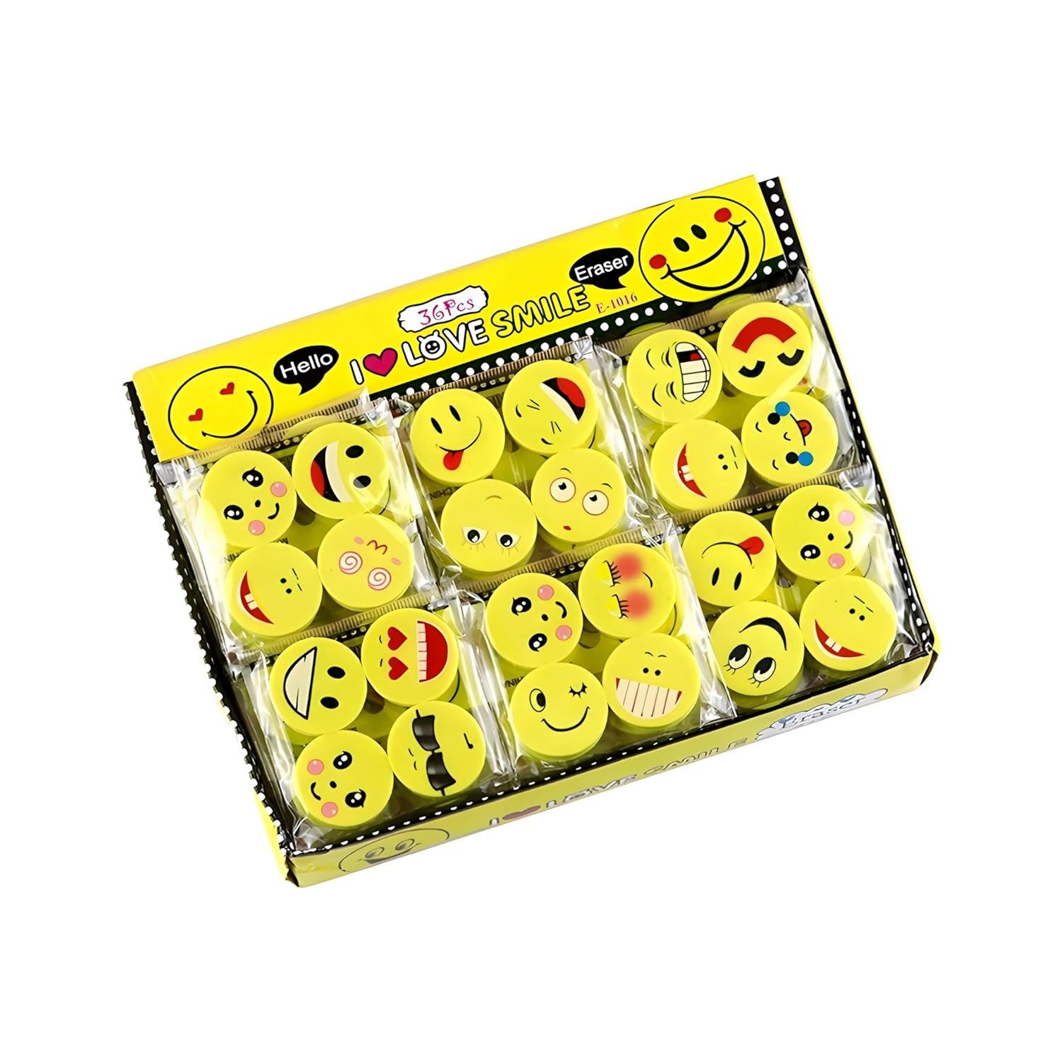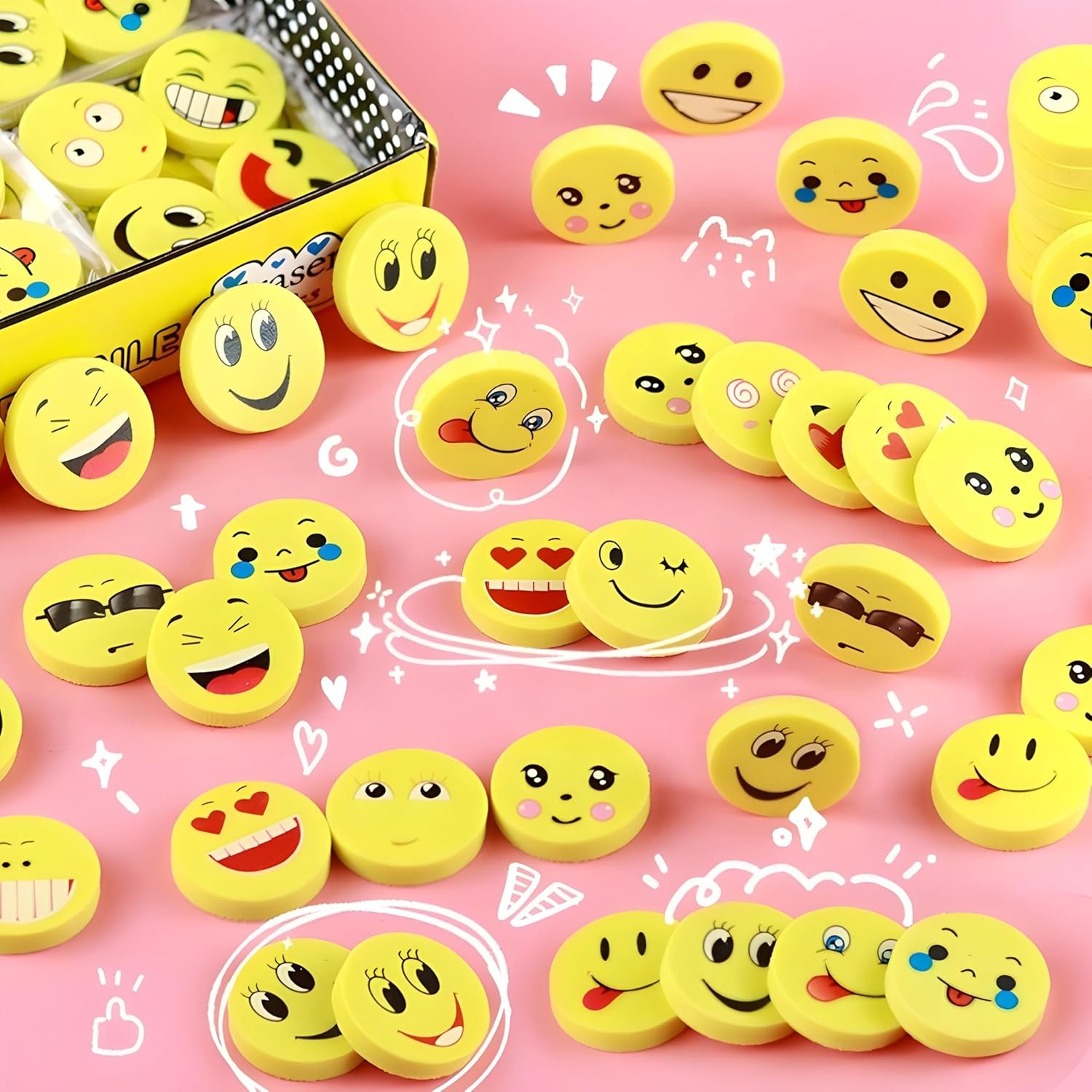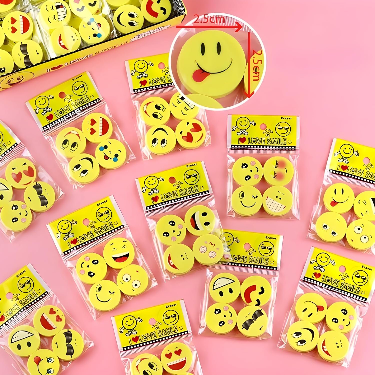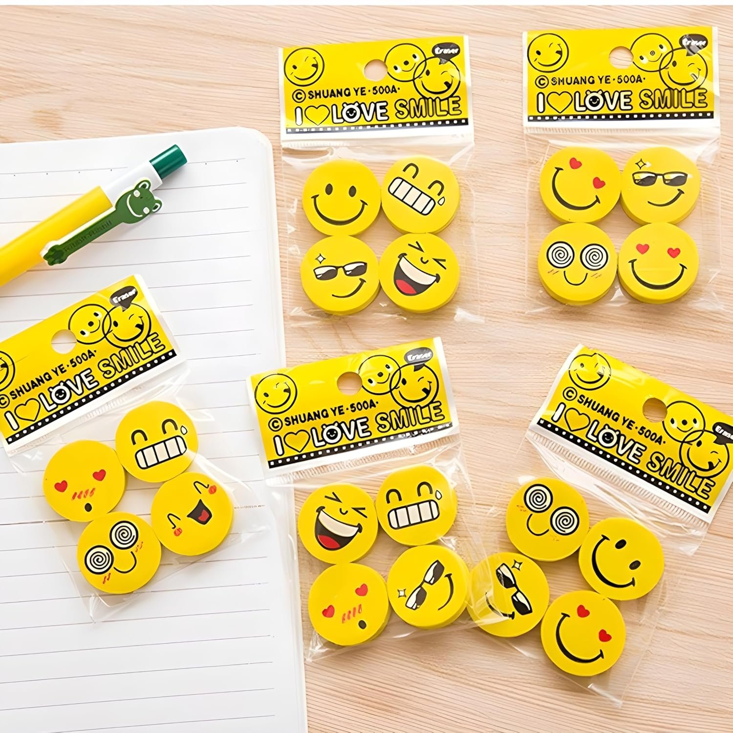 48 Pcs Smiley Erasers for Kids: Includes 12 packs of 4 erasers each, ideal for return gifts or school supplies