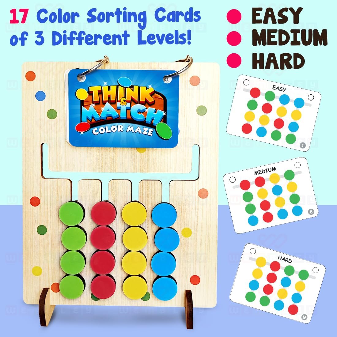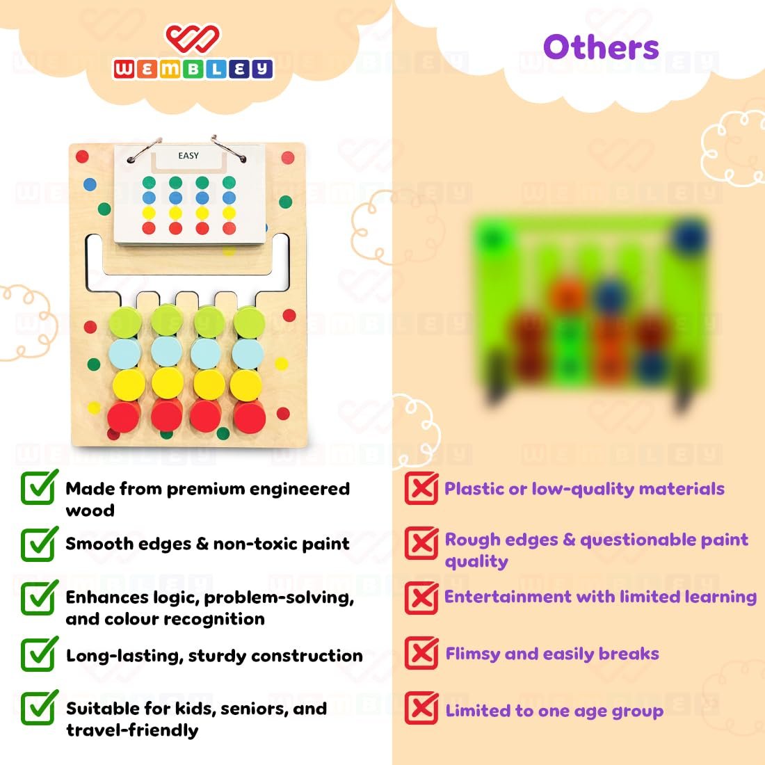 EASY TO PLAY & LEARN: Simply pick a challenge card, slide the blocks to match the colour pattern, and try to finish within a time you decide! The creative toys for kids help improve colour recognition, hand-eye coordination, and logical thinking. The wooden puzzle encourages independent play and problem-solving.