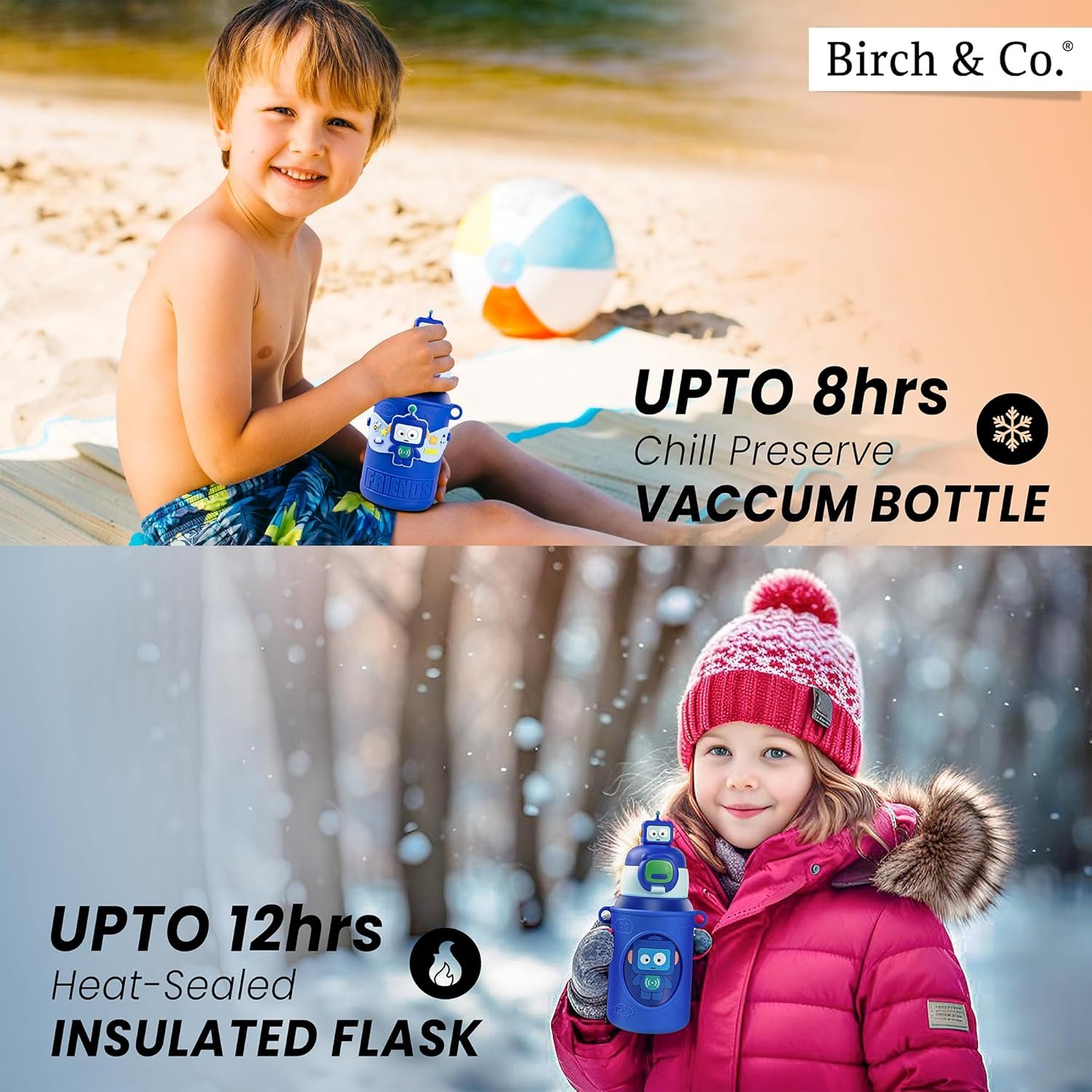 TEMPERATURE CONTROL: With advanced double-wall vacuum insulation, this water bottle keeps drinks cool for up to 8 hours and warm for up to 12 hours. Perfect for every season, kids can enjoy a refreshing cold drink in summer or a cozy hot beverage in winter. This feature ensures that drinks stay fresh and enjoyable throughout the day.