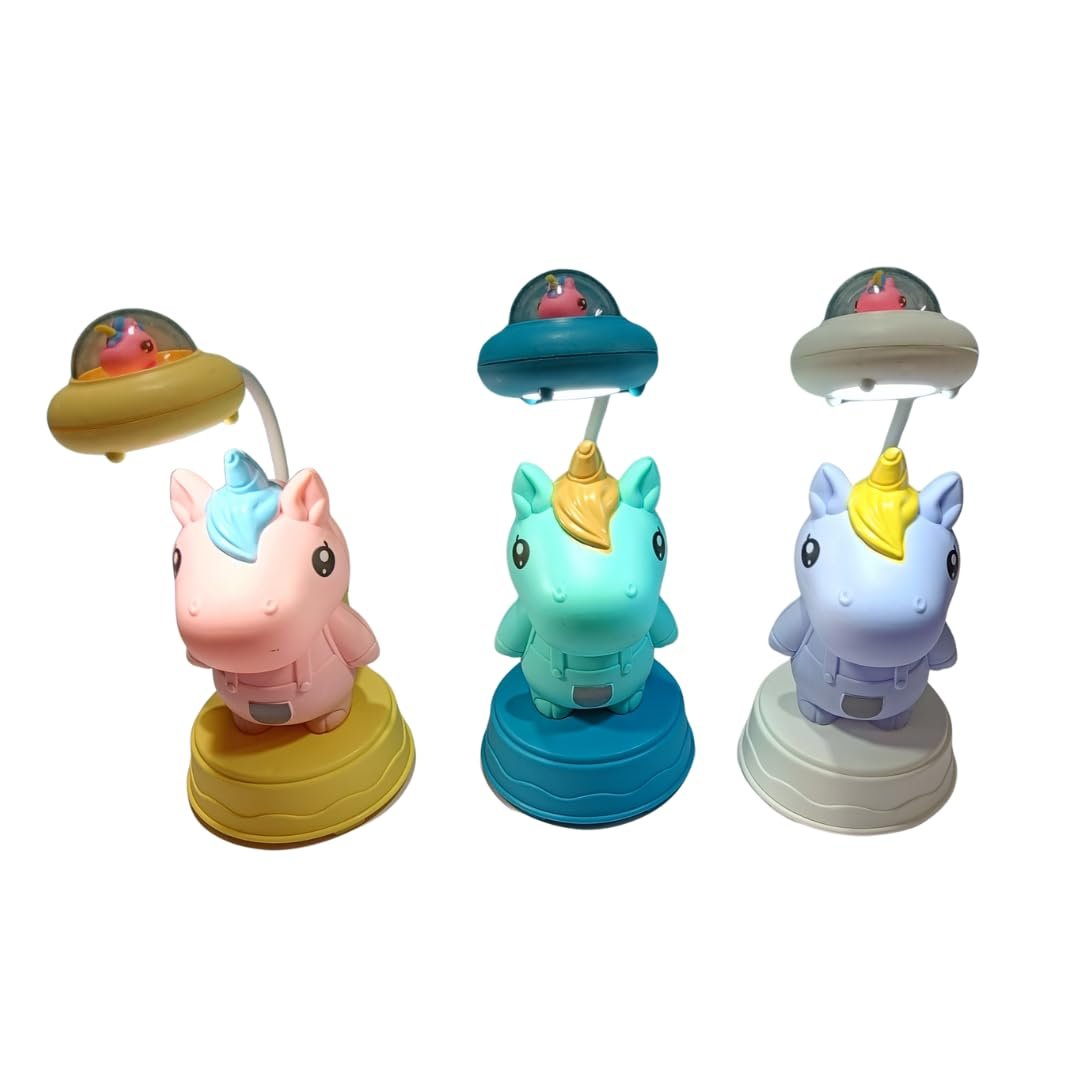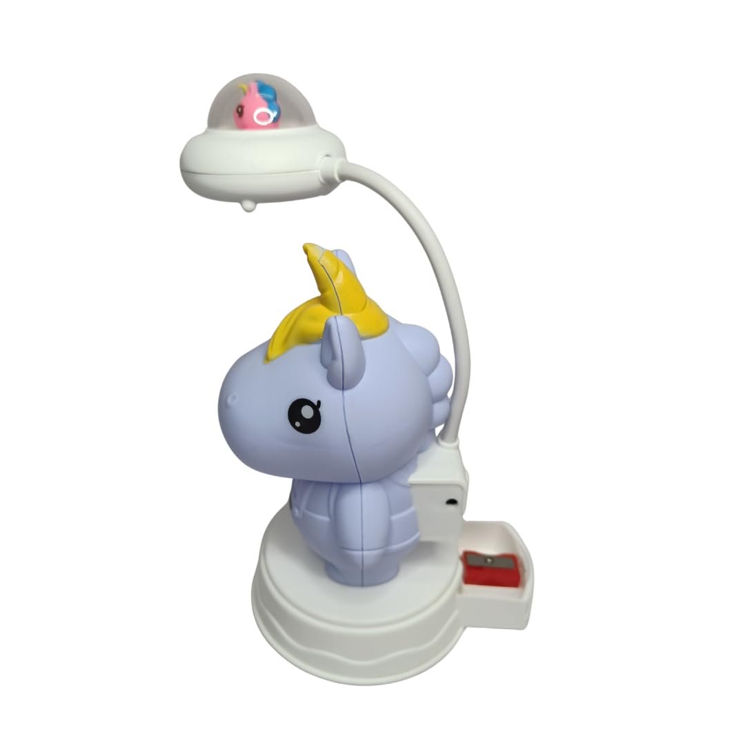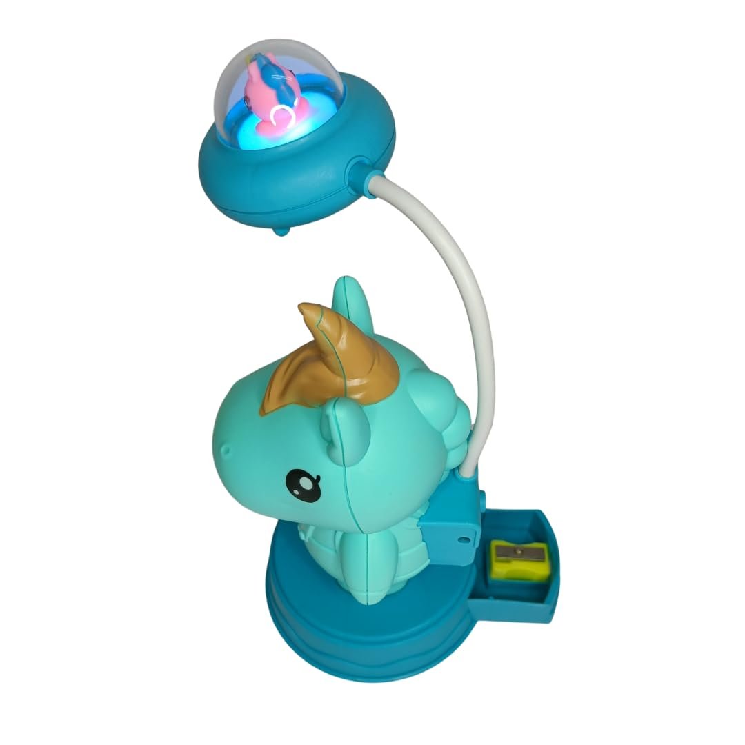 DESIGN FEATURES: Adorable unicorn-themed desk lamp with turquoise colour scheme and built-in pencil sharpener perfect for children’s study spaces