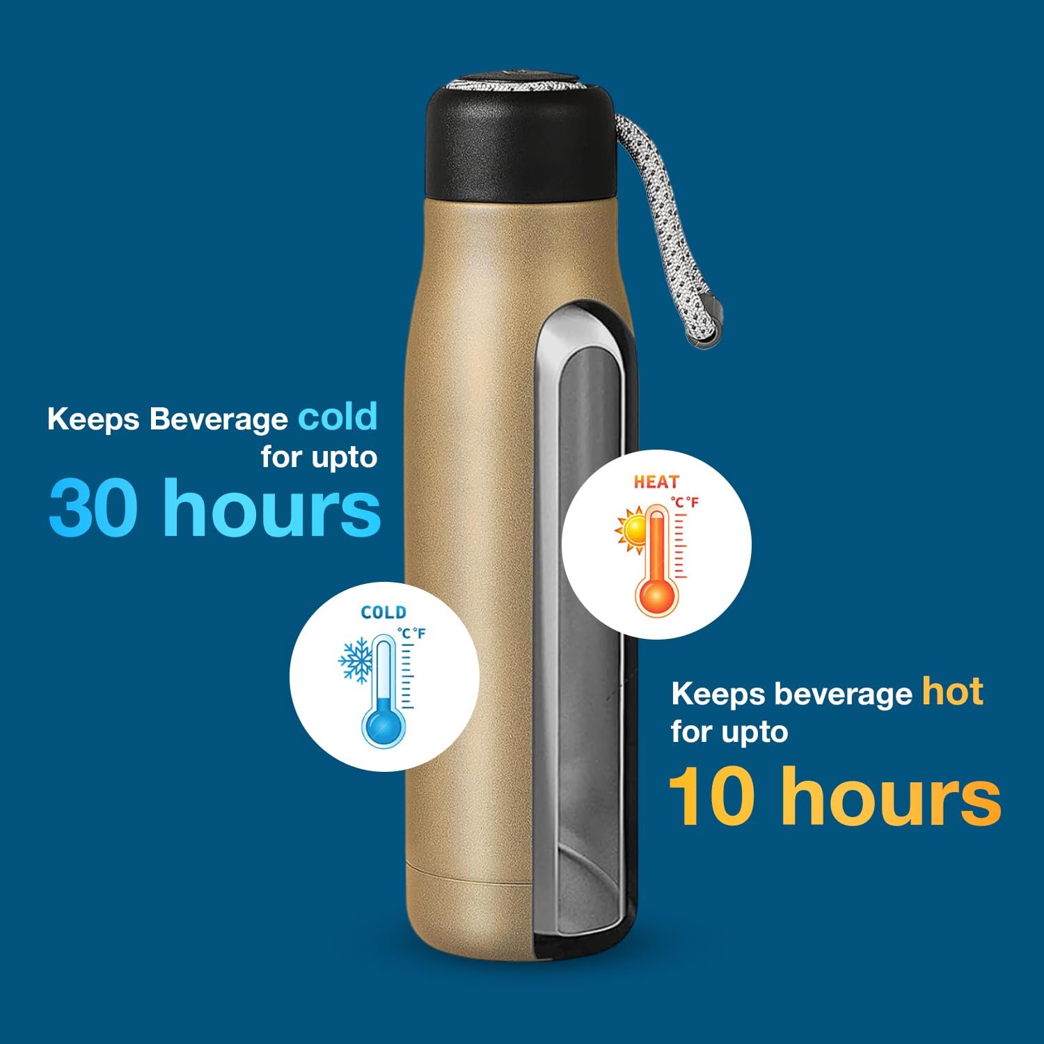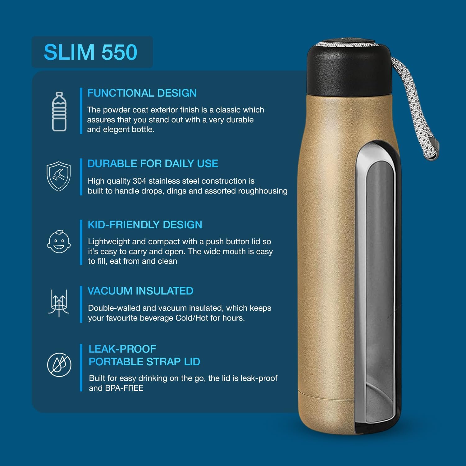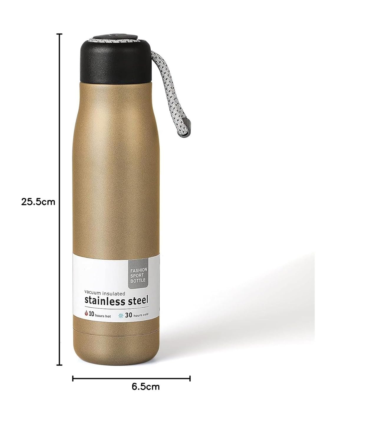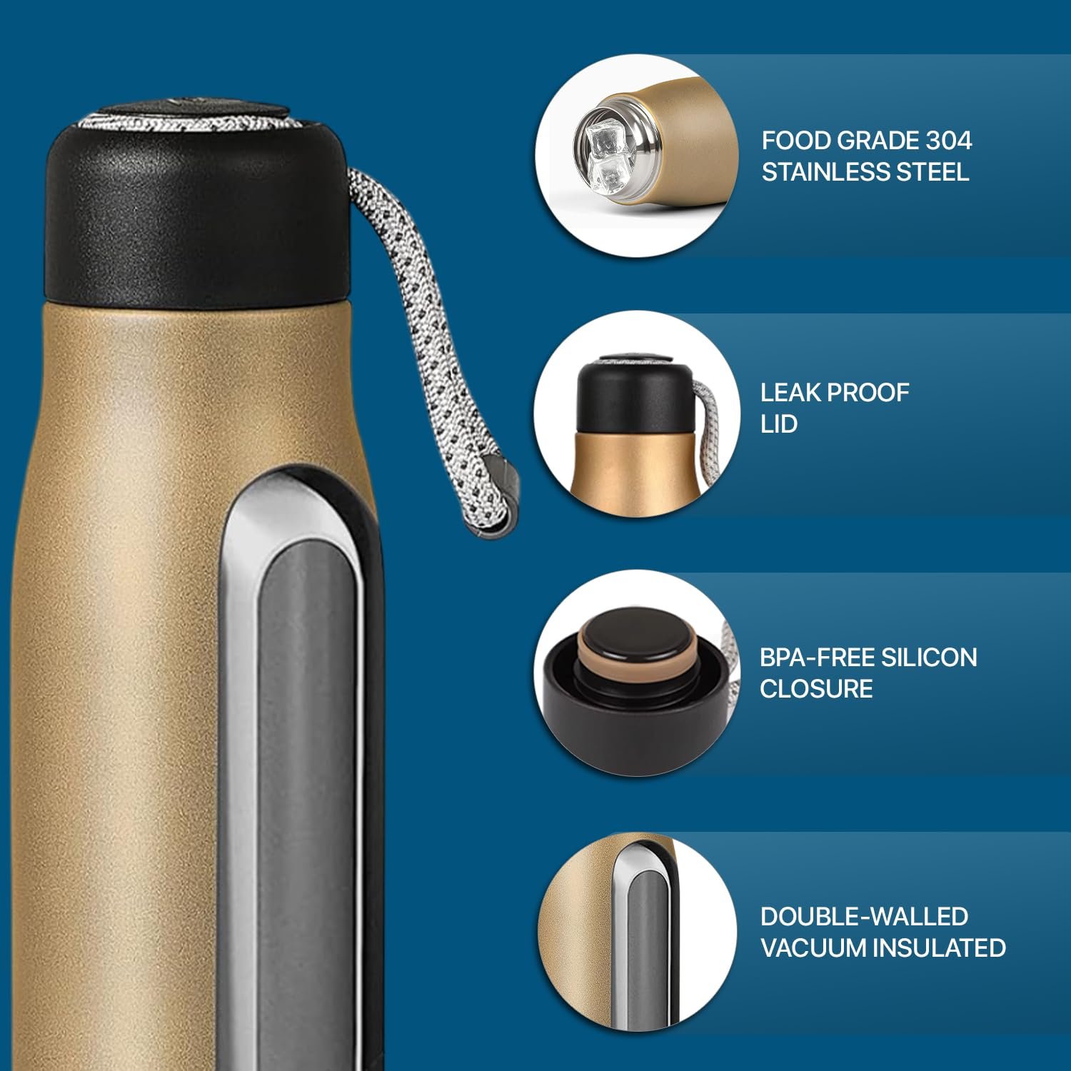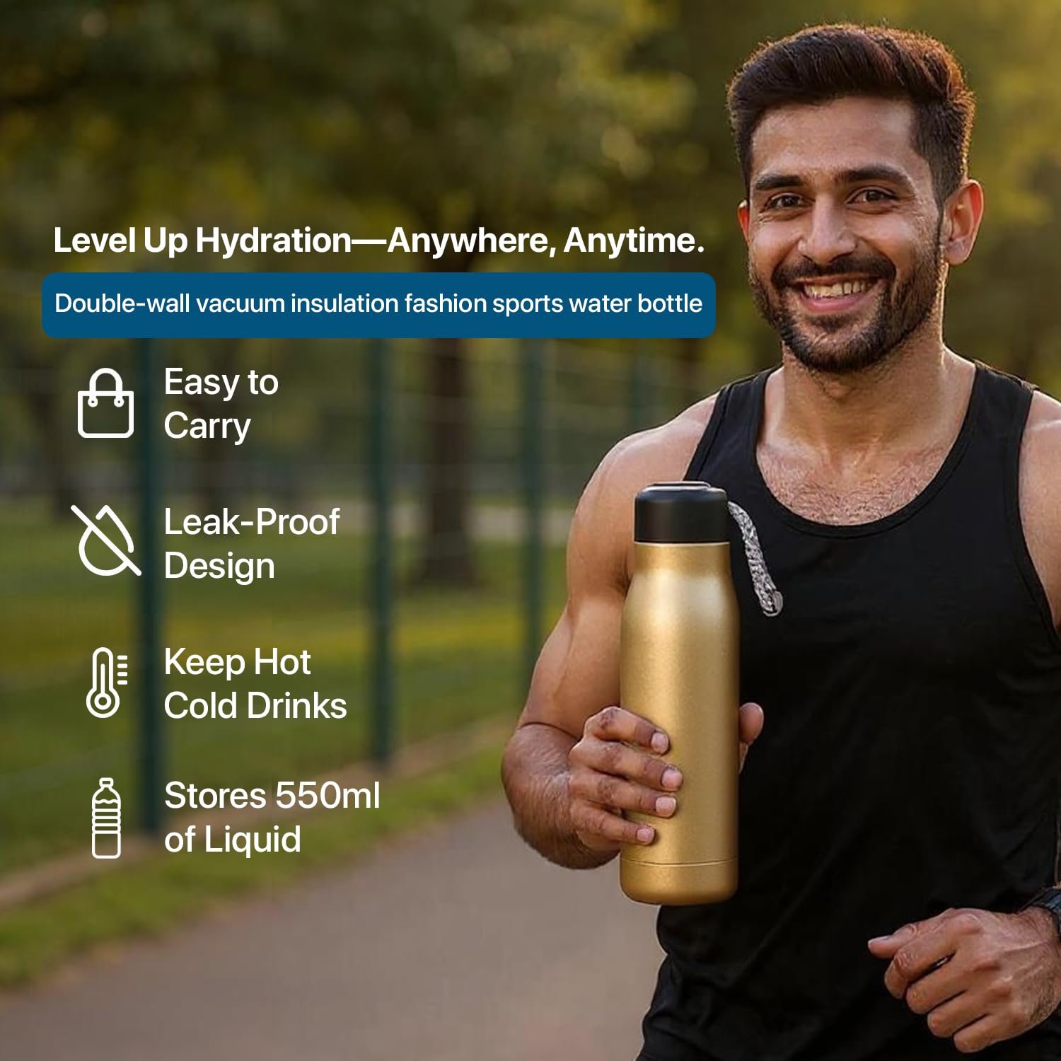 Lastwave 550ml Stainless Steel Fashion Sports Bottle | Double-Walled Vacuum Insulated | Keeps Drinks Hot for 12H & Cold for 24H | Leak-Proof, BPA-Free, Sweat-Free | Matte Finish Water Bottle (Golden)
