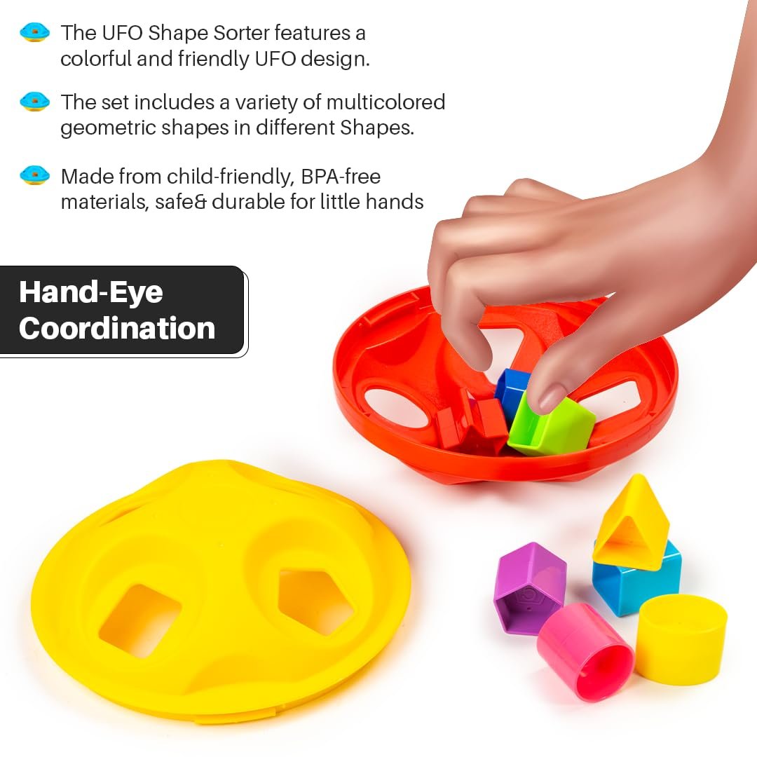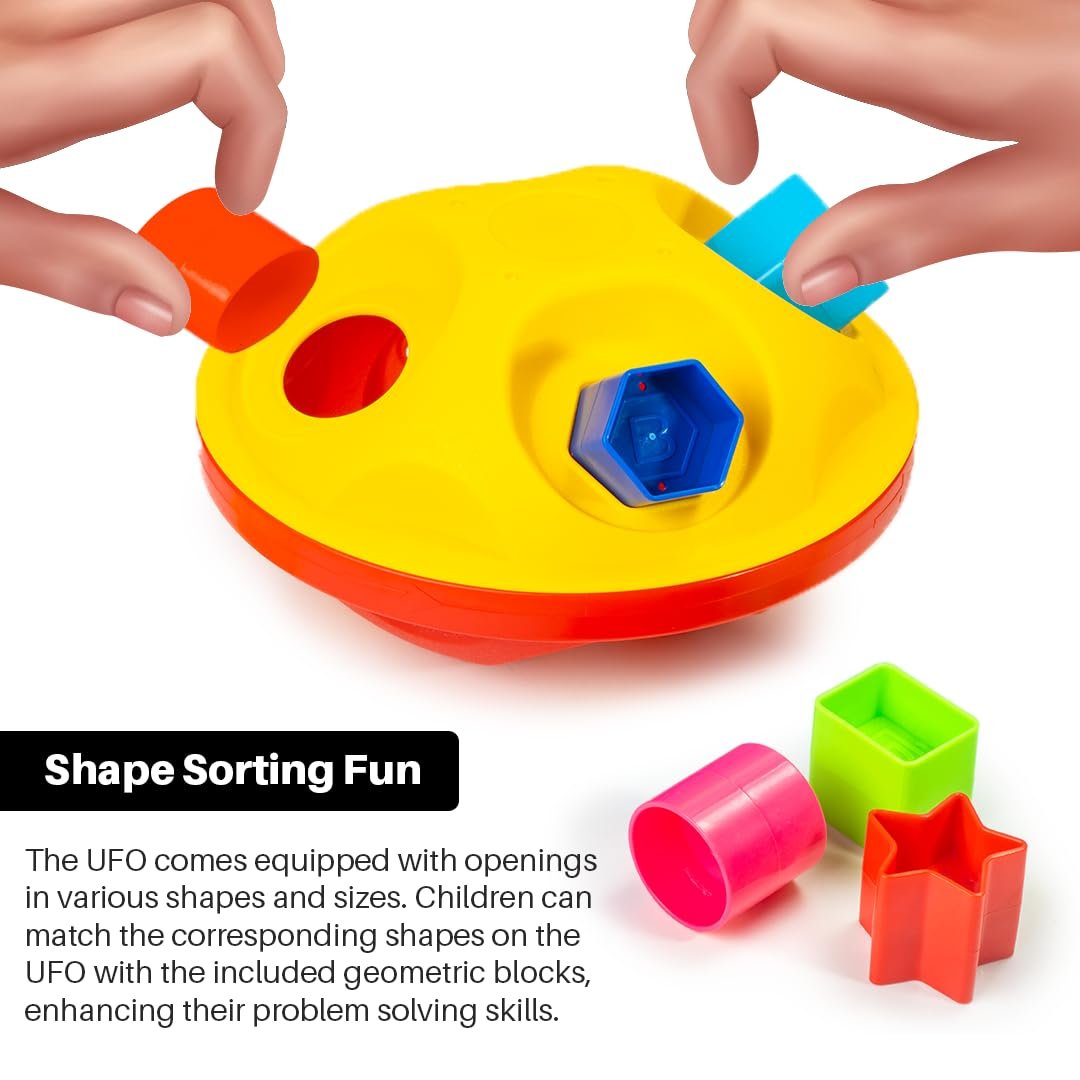 Engaging Toys: This activity set includes a pyramid shape stacker, a UFO shape sorter, and a stack-n-spin toy to keep your little one entertained and stimulate their cognitive development.