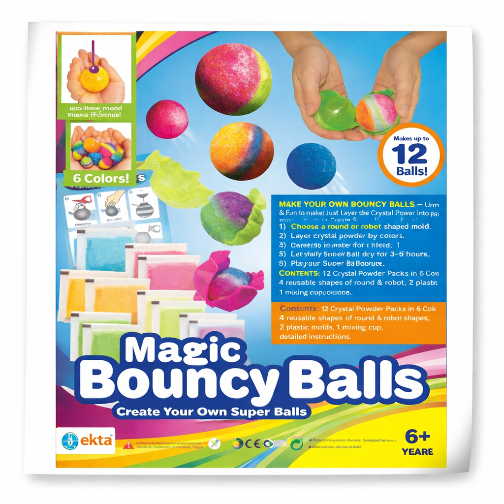 CONTENTS: 4 reusable plastic ball moulds, 12 packets of magic ball powder crystals (10gm.x12), 4 storage cups with lids and detailed instructions.