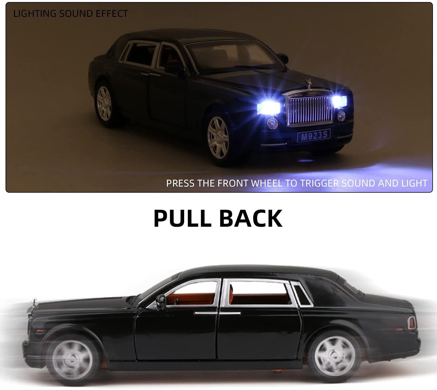 ✅【ORIGINAL REPLICA】Original Miniature Car Look, 2 Wheel Drive , Doors Can be Opened. Press the Car Bonnet or Open the door to Trigger Light & Sound ,Front and Rear Lights Glow with Music