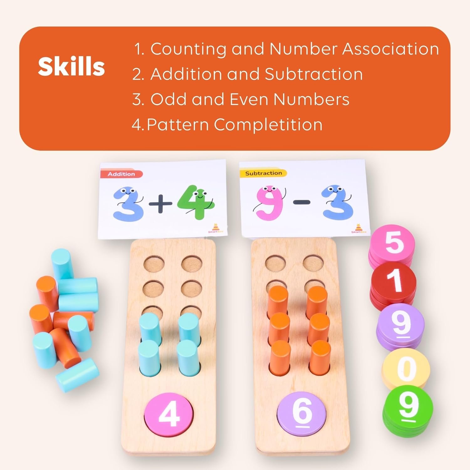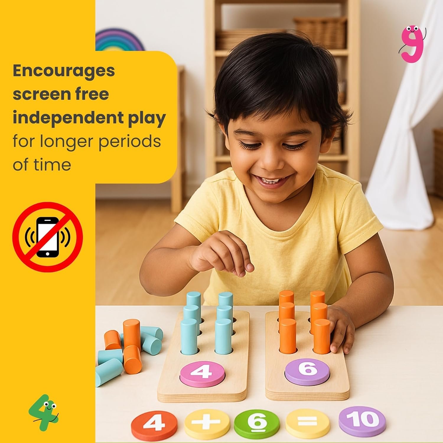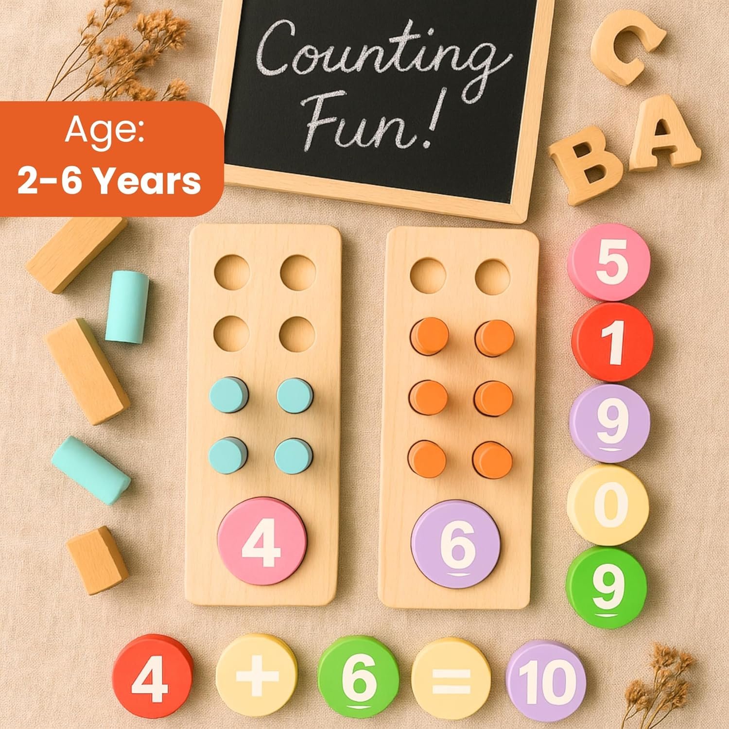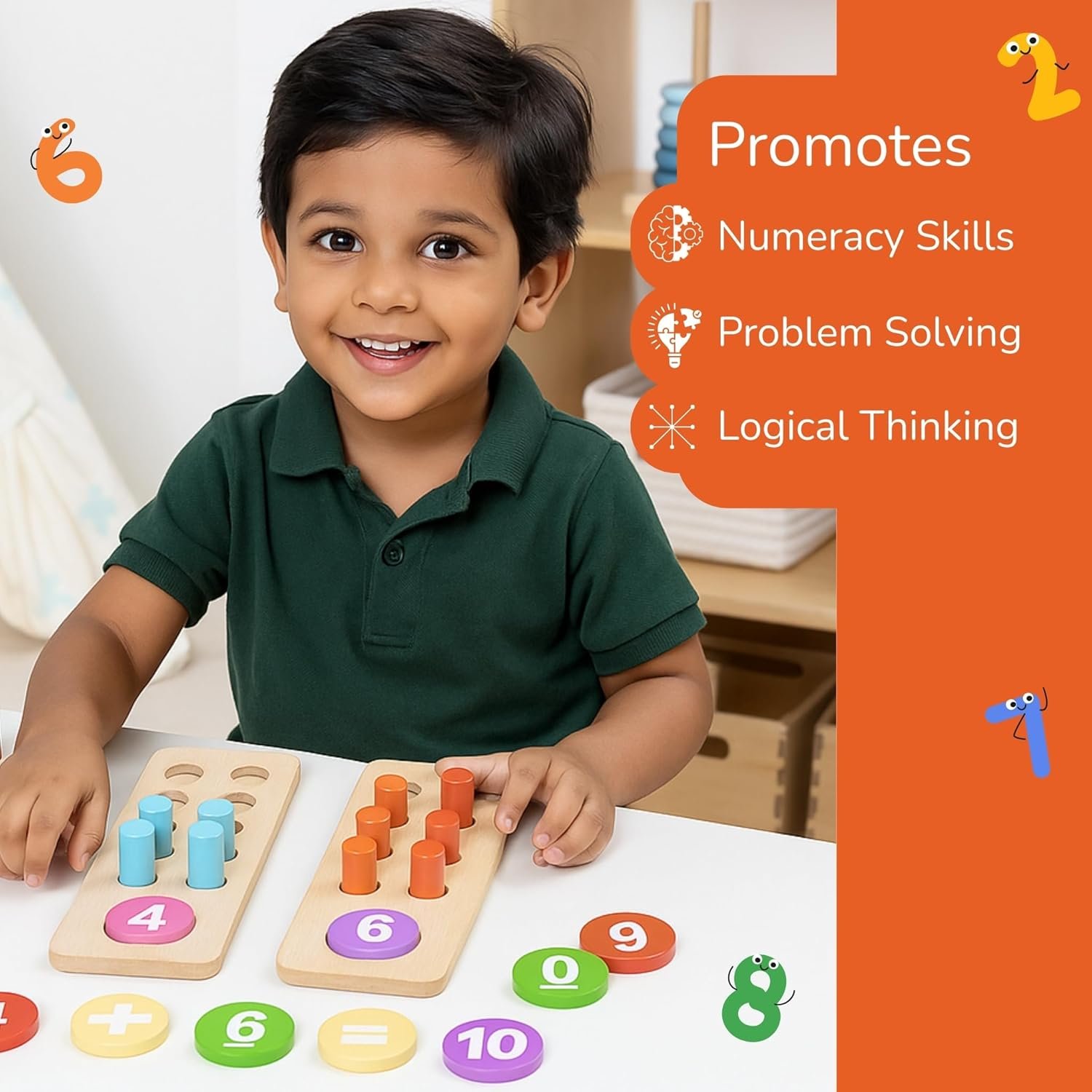 HOLISTIC LEARNING EXPERIENCE: Our maths kit (number counting pegs) combines both learning toy functionality with engaging play elements. From basic counting to introduction to addition and subtraction, this versatile set grows with your child, supporting their mathematical development at every step.