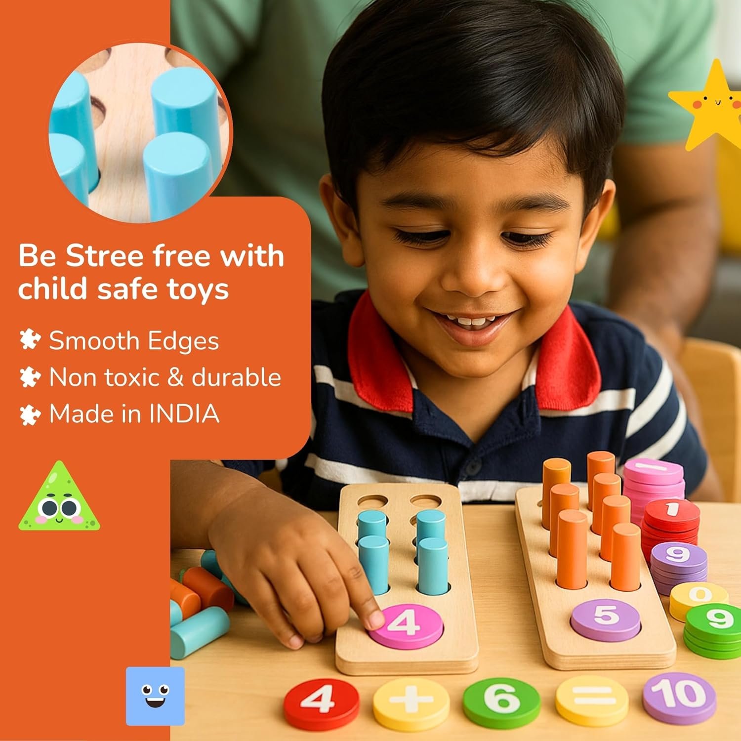 SAFE AND SUSTAINABLE DESIGN: Crafted from premium natural wood with non-toxic paint, our counting toys for kids are built to last through years of active play. The sturdy construction maintains its vibrant colors while ensuring complete safety for your child’s learning journey.