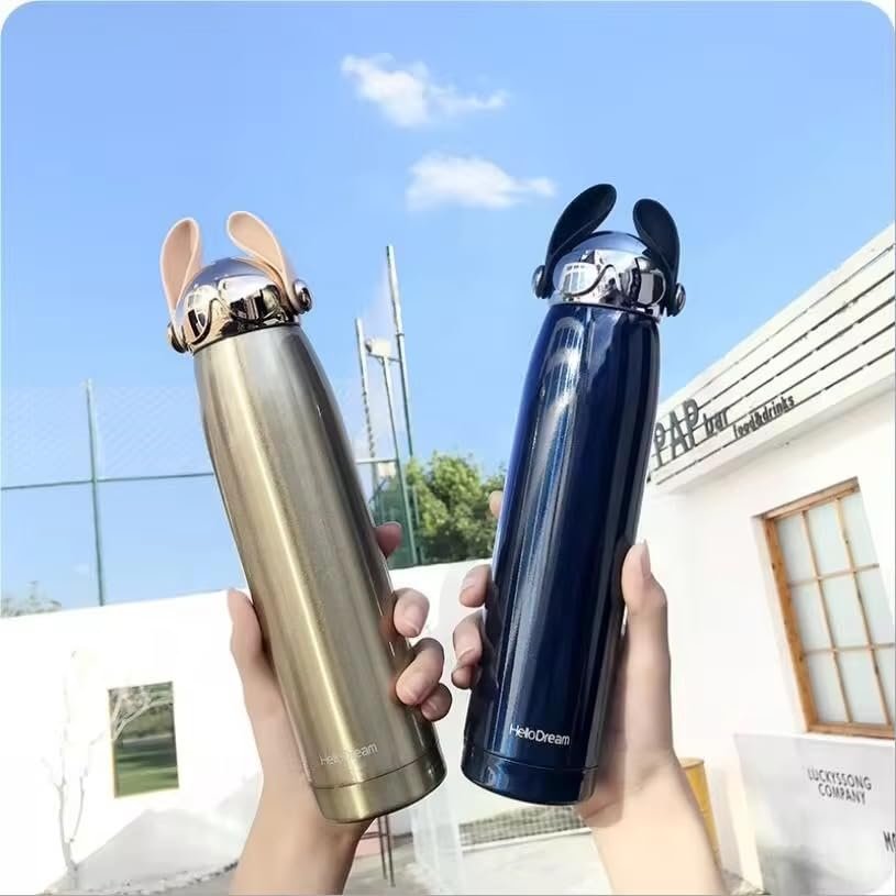 CAPACITY & DESIGN: 350 ml capacity with adorable cat ear cap design, perfect for daily hydration needs at school, office, or travel