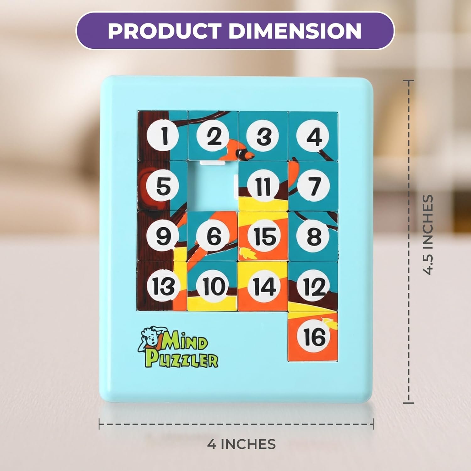 Solving the incredible mind puzzler by sliding the coloured, printed tiles up, down left and right, so as to assemble the complete picture correctly