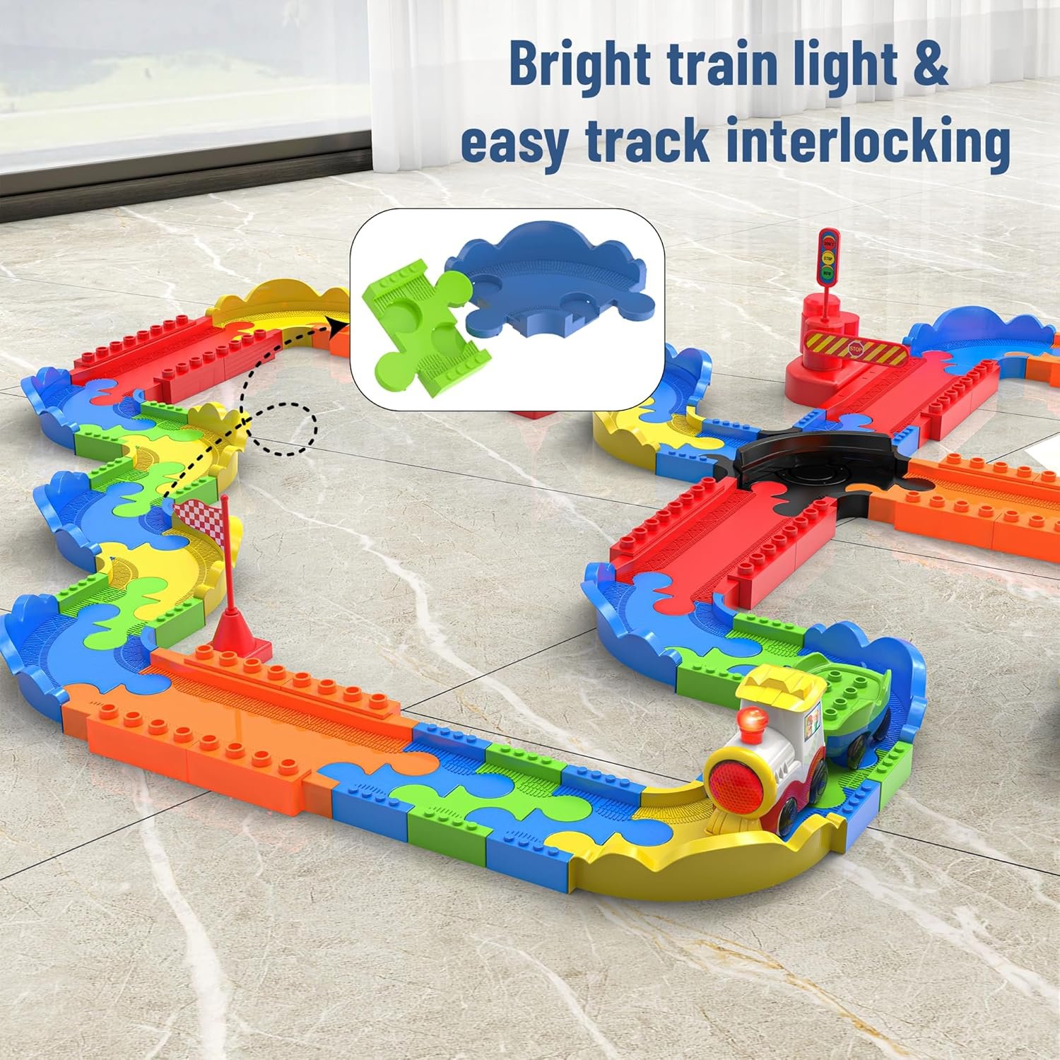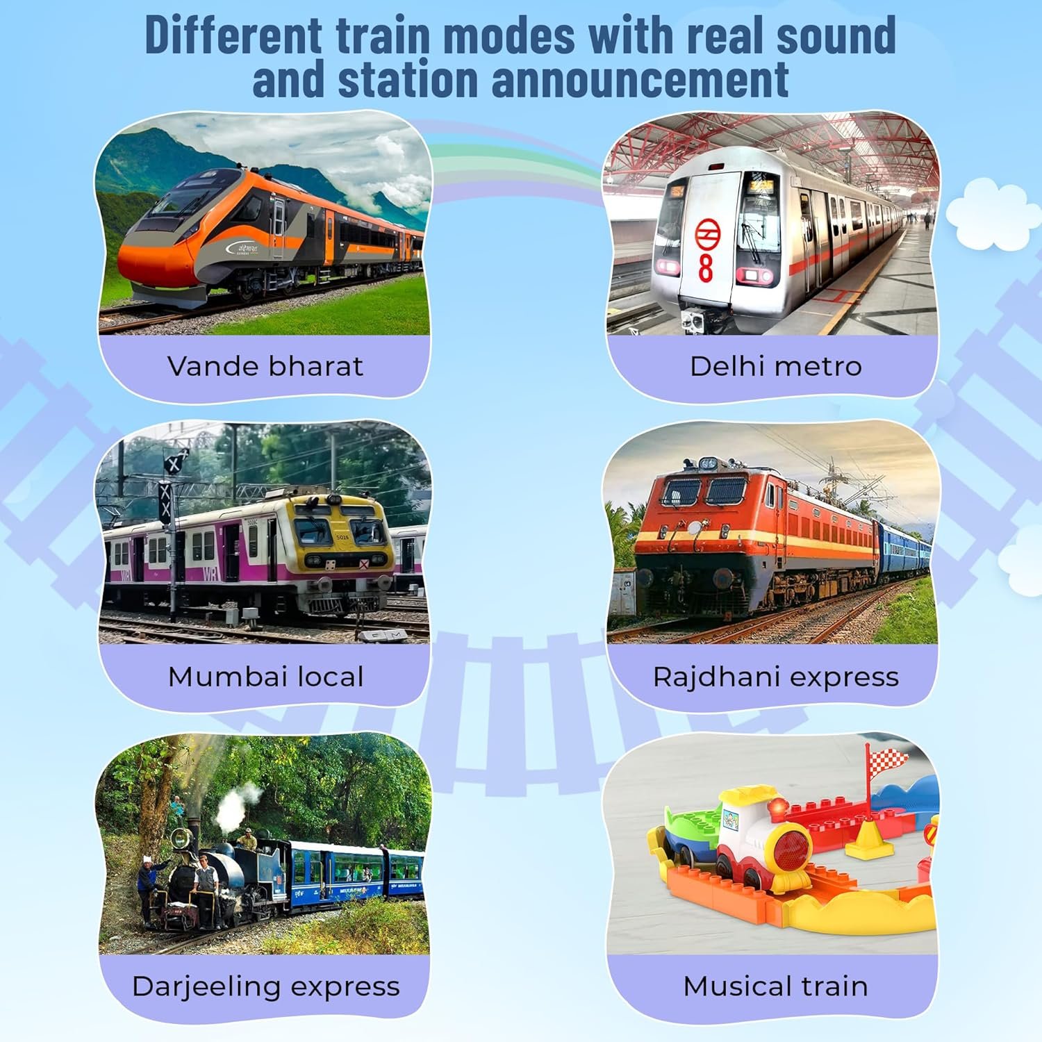 Multiple Track Layouts for Endless Fun: Design your own unique railway routes with this toy train set featuring easy interlocking track pieces. Explore different configurations every time for hours of creative play. Different Train Modes with Real Sound Effects: Bring the magic of the railway to life with real train sounds and station announcements. Your kids will enjoy an authentic train experience in their own playroom.
