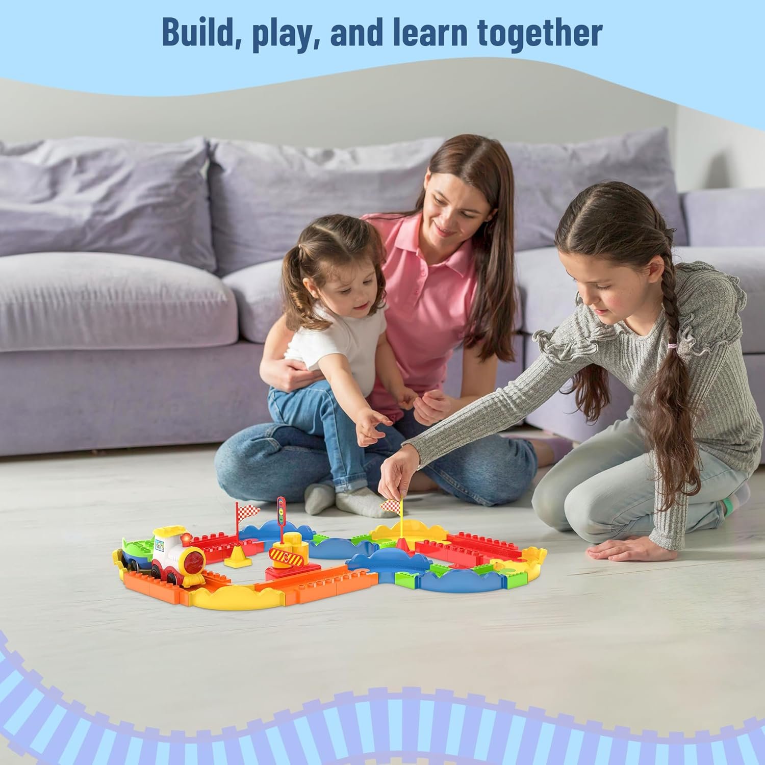 bp 2- Compatible with Universal Blocks: The Mirana Block Rider Train Set is compatible with all major block brands, allowing children to expand their tracks and build custom layouts using their favorite blocks;Light and Engine Sounds for Enhanced Play: This train set comes to life with lights and engine sounds that create a realistic atmosphere, making every ride more exciting and engaging for kids.