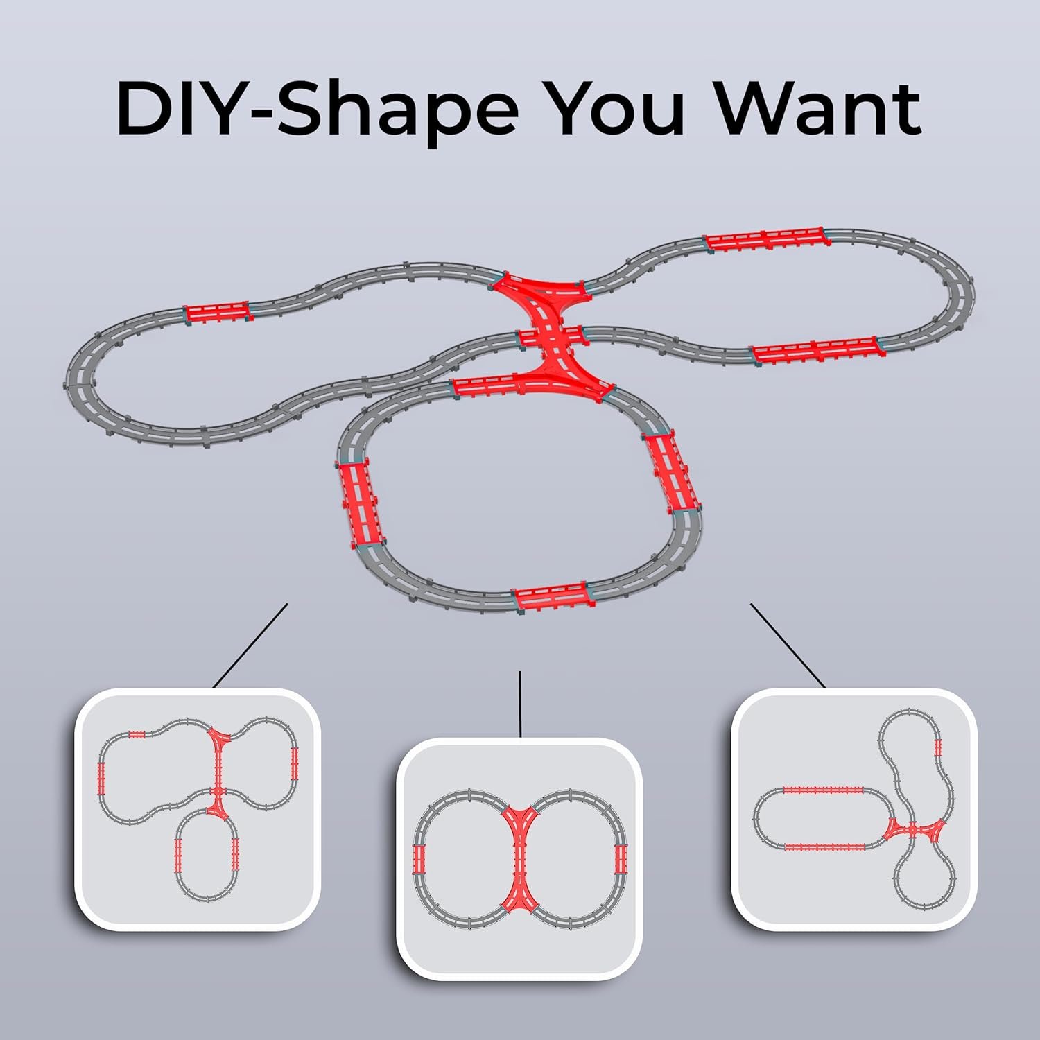đŸ§© Multiple Track Layouts (10+) with Smooth Edges – Create over 10+ railway designs using durable track pieces with smooth edges for safe hands-on play. Kids can build loops, curves, and long routes, improving motor skills and creativity. The tracks interlock easily and are compatible with other toy sets for enhanced play.