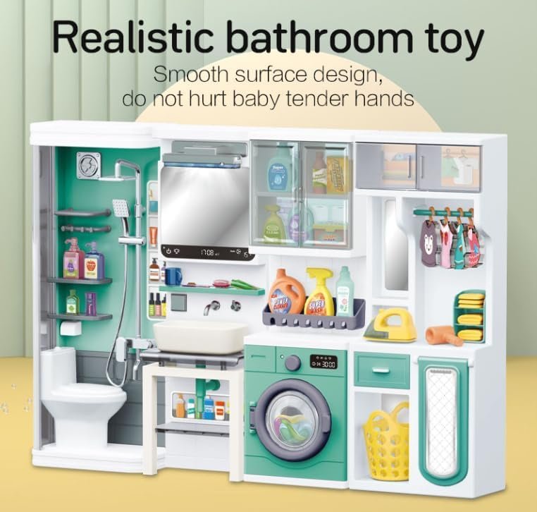 Includes Mini Washing Machine, Shower & Toilet – Fully equipped for immersive pretend play