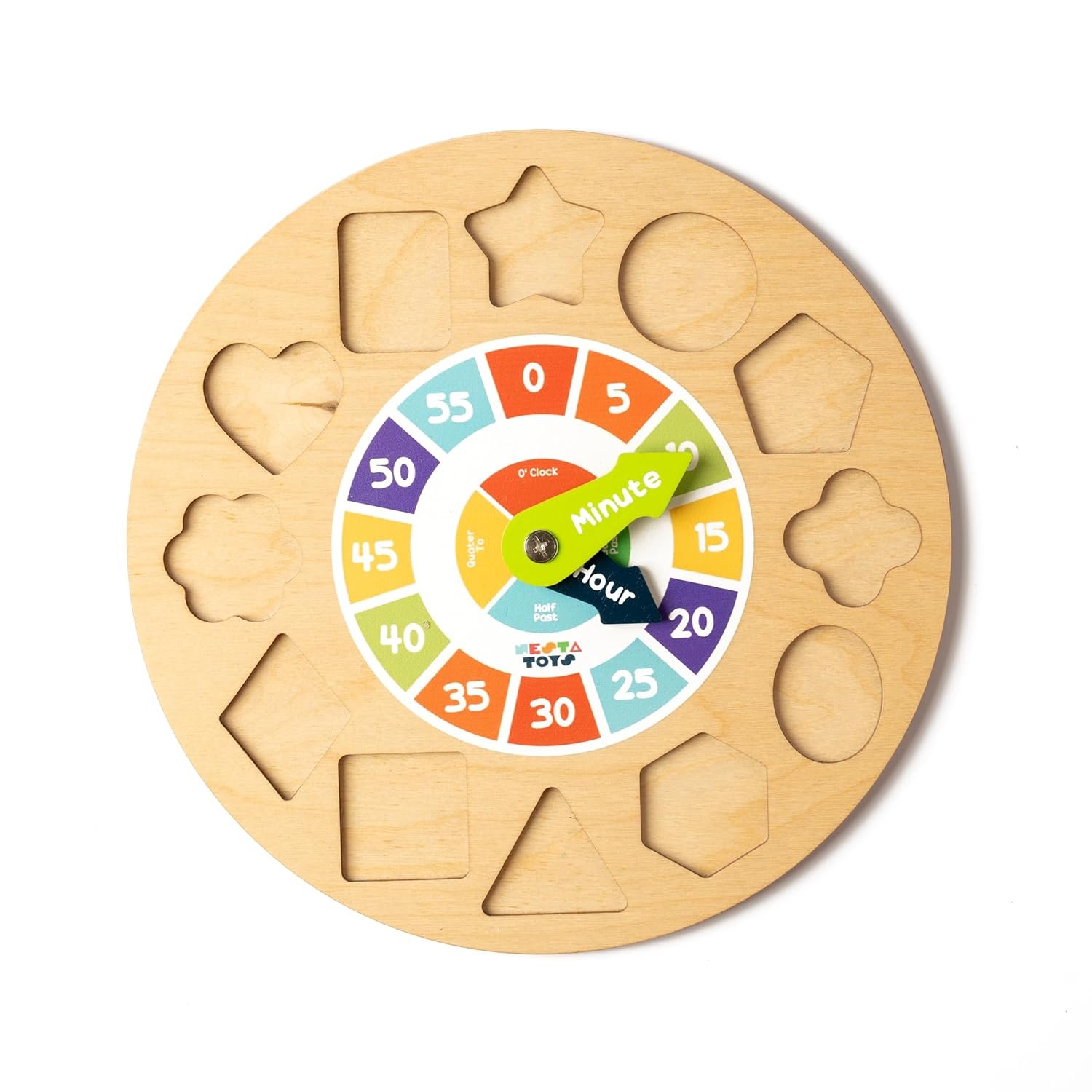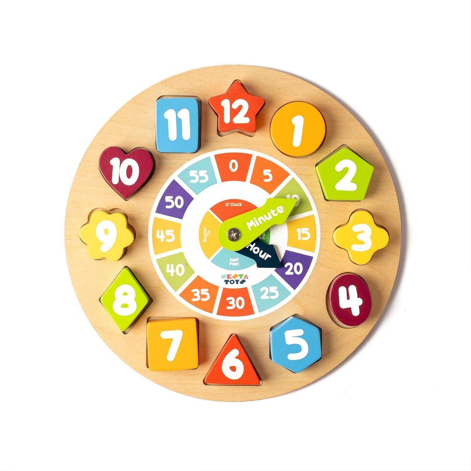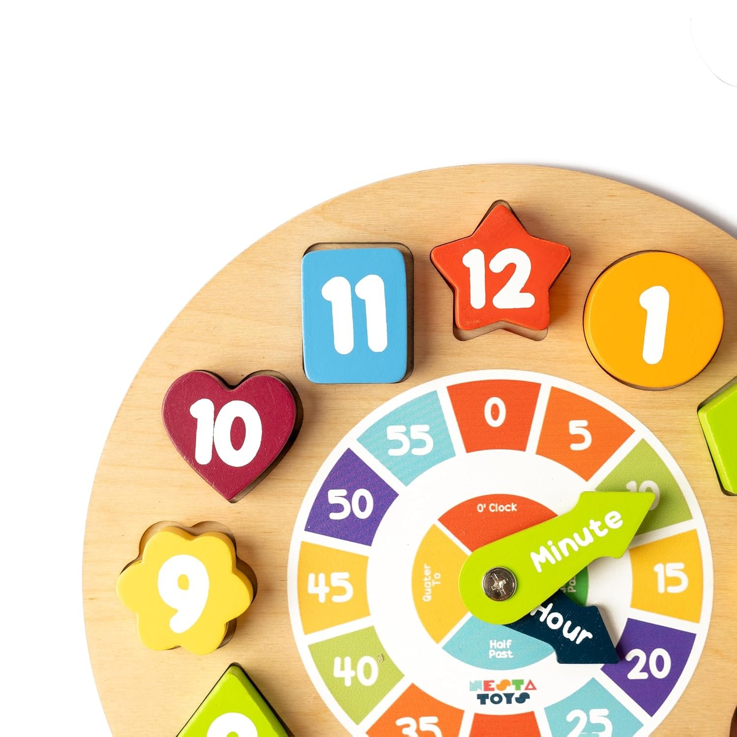 NESTA TOYS – Wooden Clock Toy, Shape Sorting Educational Toy, Montessori Learning Baby Toys, Ideal Gift for Toddlers (3+ Years)