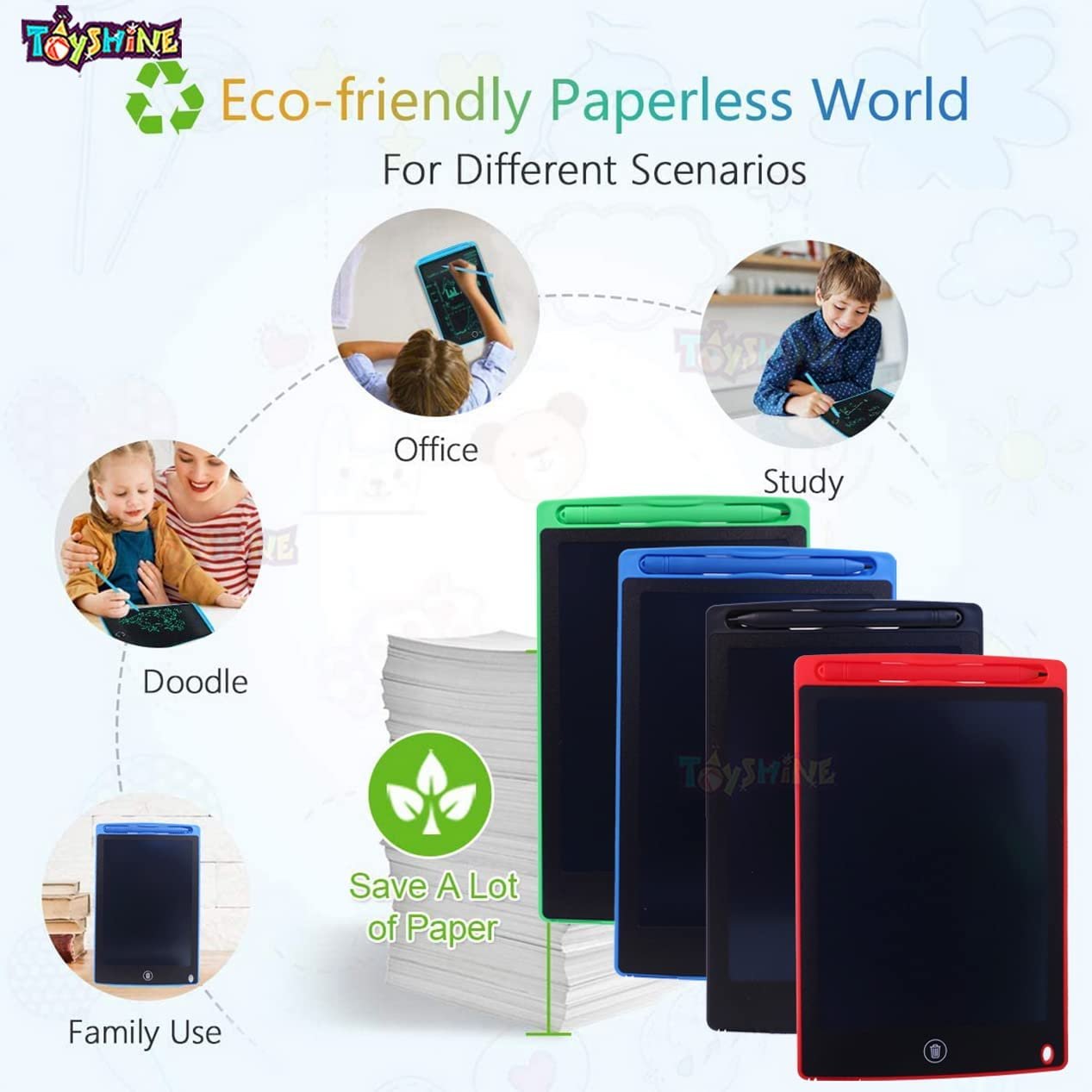ECO-FRIENDLY AND EYES PROTECTION :- Erase button of writing tablet make it reusable as the equivalent of 50,000 sheets of paper. No mess or wasted paper! Paperless designed drawing board is without electromagnetic radiation. Writing or drawing with pressure, writing stylus or any other instrument even your fingernails.