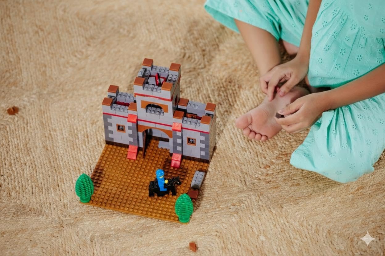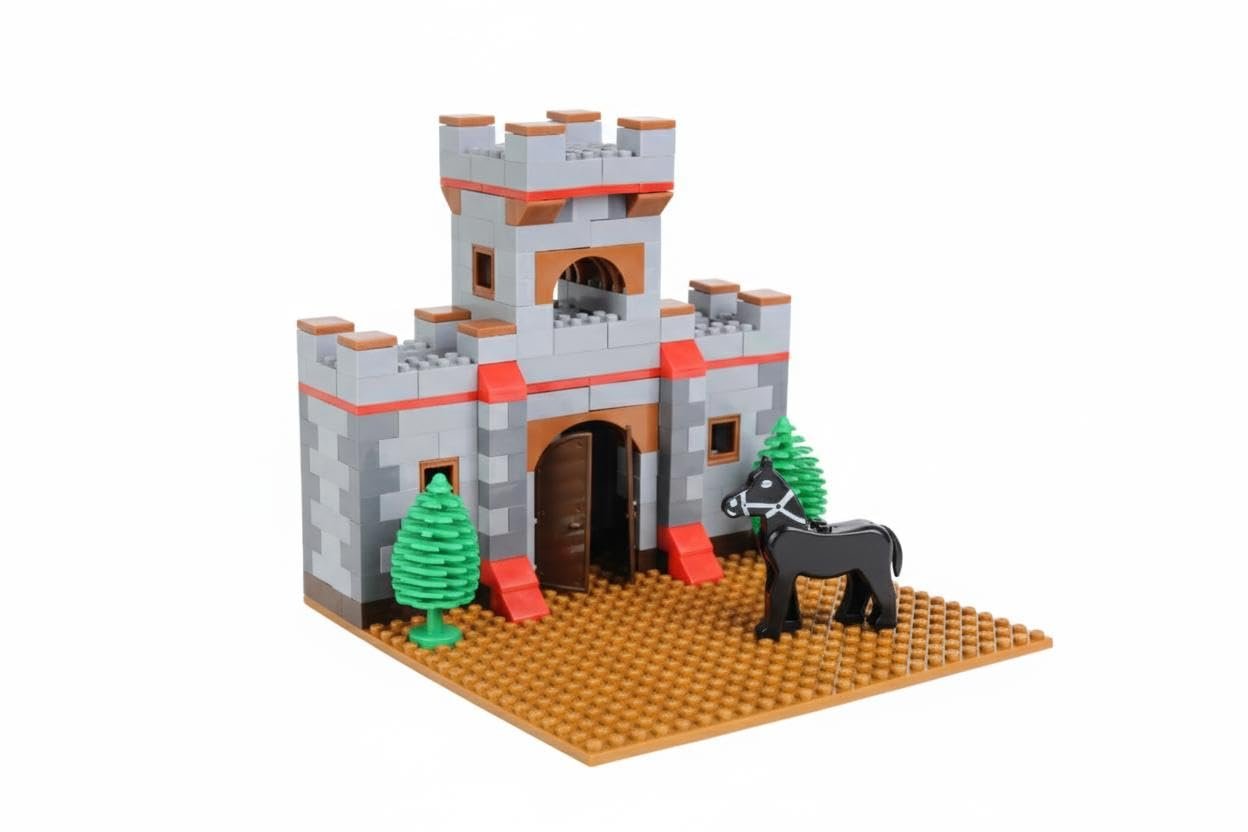 Let your child build their own magical world with the PEACOCK Castle Set Junior—a building block set that goes beyond fun and sparks creativity at every turn. With over 450 colorful pieces, kids can construct castles, tanks, horses, warriors, and anything else their imagination dreams up.This set isn’t just about stacking blocks—it’s about creating stories, building confidence, and learning without even realizing it. Whether they follow one of the 3 models in the included manual, or freestyle their own masterpiece, every build helps kids explore shapes, colors, and spatial thinking in a fun, hands-on way.Perfect for kids aged 6 and above, it’s also a great activity for parents and children to enjoy together. Made from safe, high-quality ABS plastic, the blocks are designed for everyday play and endless re-building.Whether you’re looking for a unique birthday gift or a creative, screen-free activity, this Castle Set Junior is a toy that kids will return to again and again.
