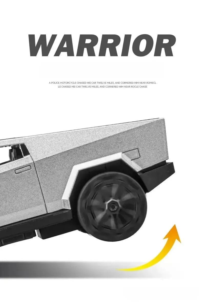 Experience the thrill of futuristic driving with the PLUSPOINT CyberTruck Model Car 1/36, a compact yet powerful toy that blends innovation, durability, and fun. Designed for kids and collectors alike, this diecast model captures the bold, angular design of the iconic CyberTruck in a smaller 1/36 scale—perfect for both hands-on play and display. Crafted from high-quality diecast metal with plastic detailing, this CyberTruck toy is built to withstand hours of imaginative play. It features realistic detailing, from the sharp-edged body lines to textured tires and tinted windows, bringing the futuristic look to life. With a simple pull-back action, the truck zooms forward, offering exciting, fast-paced fun for children. The PLUSPOINT CyberTruck isn’t just about looks—it also includes **light features** that activate when the truck is in motion, adding extra excitement and visual appeal. Whether it’s used for racing across the floor or parked on a shelf as part of a collection, this toy model strikes the perfect balance between play and aesthetics. Ideal for boys and girls who love cars, trucks, and imaginative play, it’s also a standout piece for CyberTruck fans and enthusiasts. Its compact size makes it great for travel or small play spaces, while its quality construction ensures it will last through plenty of adventures. Whether you’re gifting it for a birthday, holiday, or just because, the PLUSPOINT CyberTruck Model Car is sure to delight anyone who dreams of the road ahead. A must-have for future-forward fun.