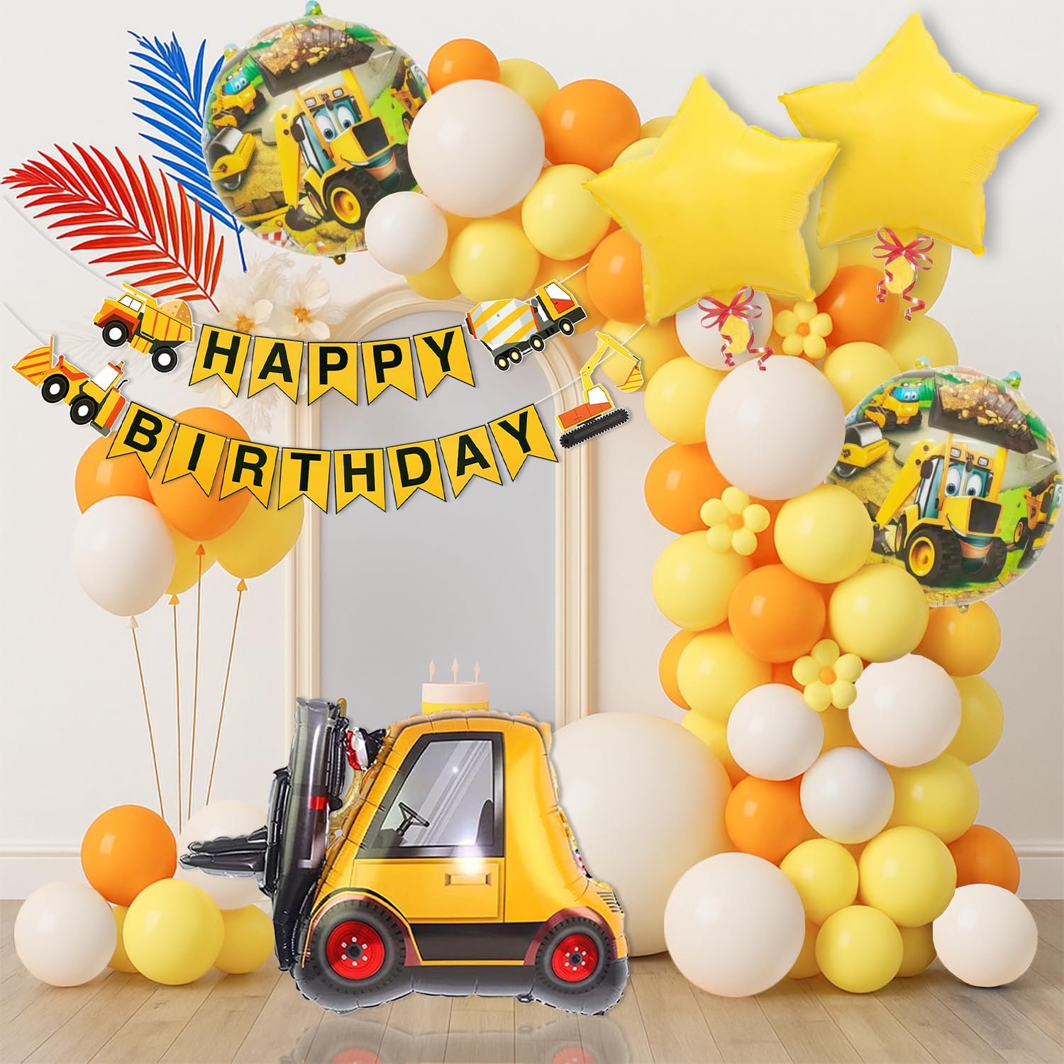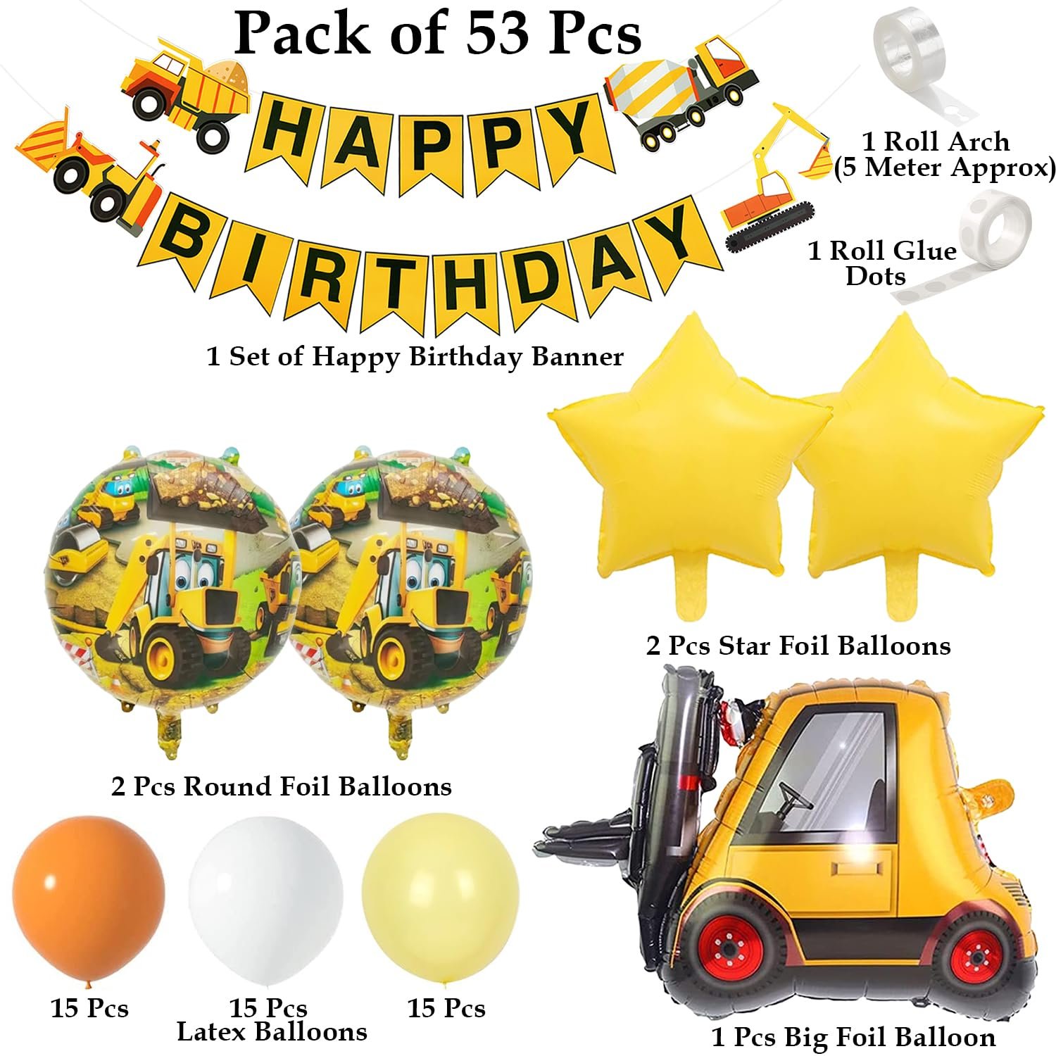 Package Included:- 1 Set of Construction Theme Happy Birthday Banner, 1 Pcs Jcb Foil Balloon, 2 Pcs Round & 2 Pcs Star Foil Balloons, 45 Pcs Latex Balloons & 1 Roll Arch, 1 Roll Glue Dots