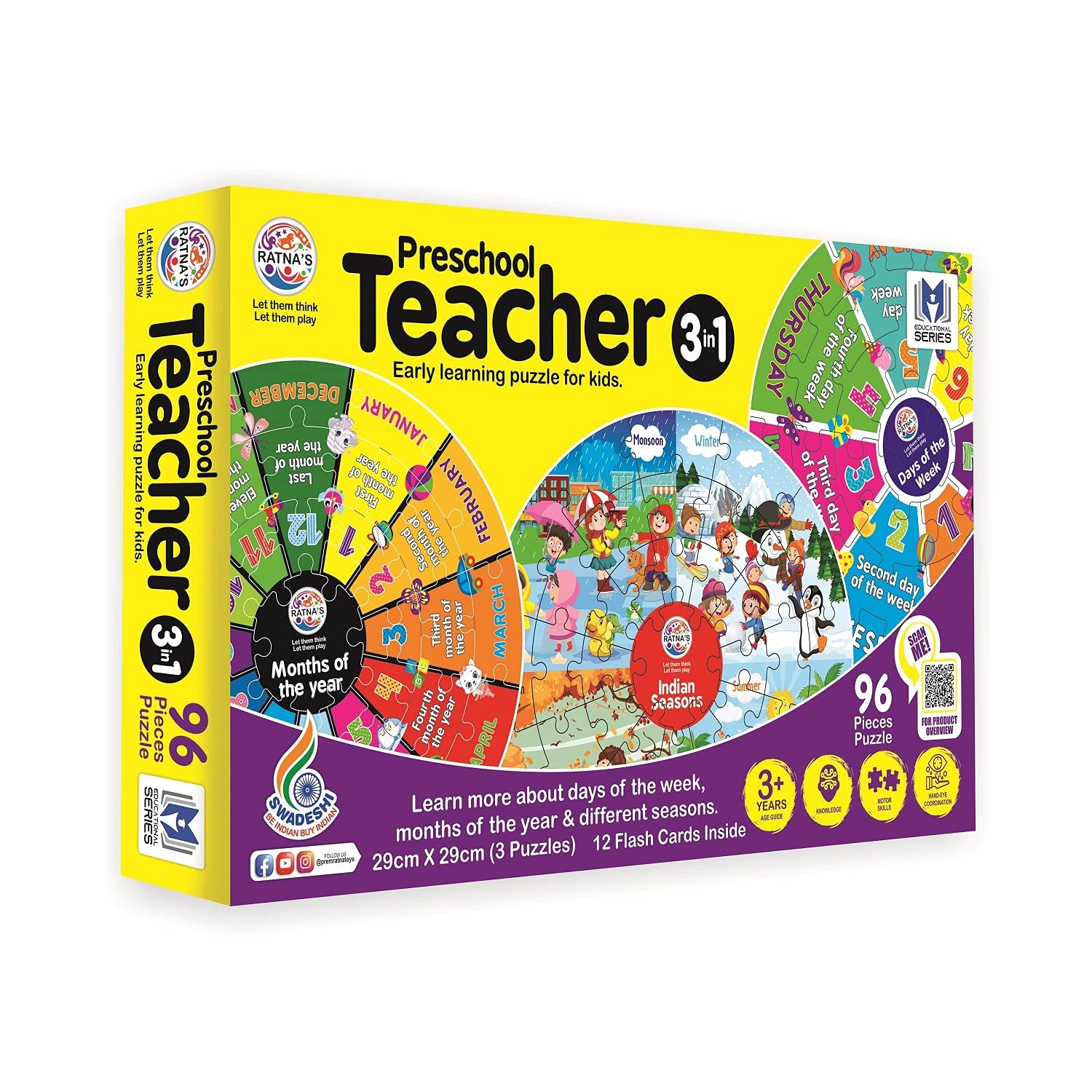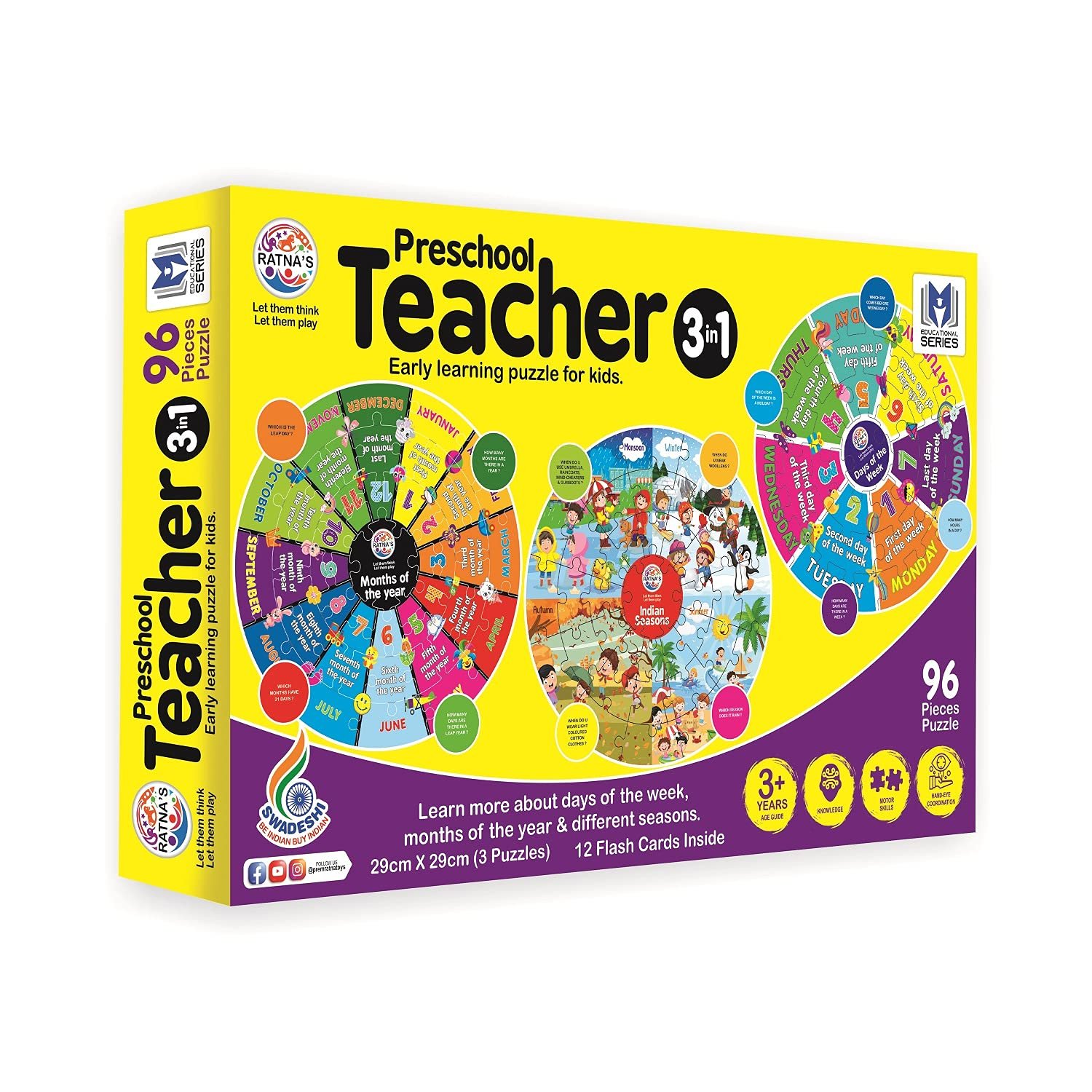 Our exclusive material used in these puzzles makes them less prone to scratches and tears. Also, the pieces have a fine grip which makes them easier to hold and place. Each puzzle has beautifully illustrated designs, and images that will compel you to complete the entire puzzle. All the puzzles in this series are completely non-toxic, and Swadeshi.
