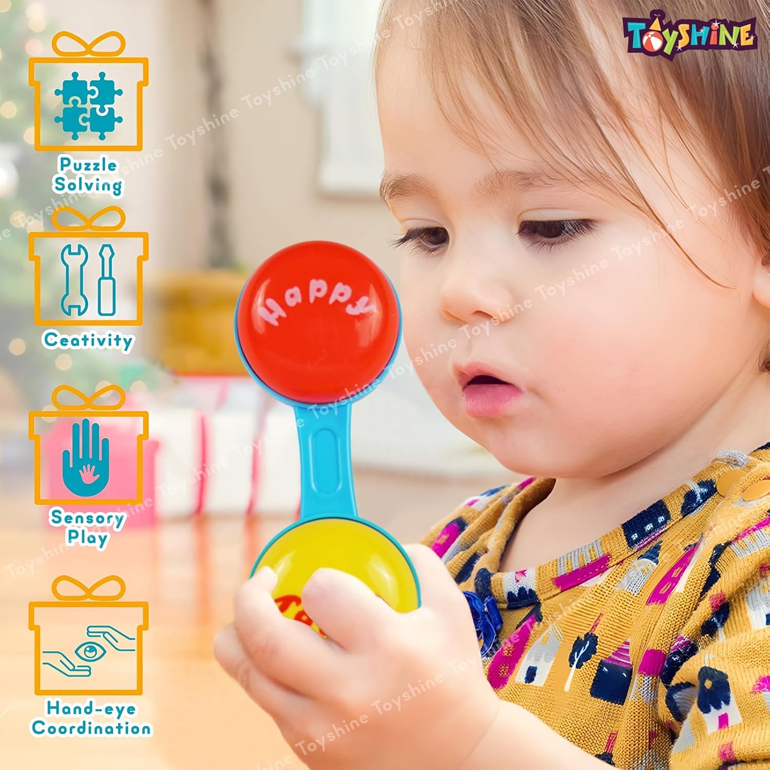 Ergonomic Design for Tiny Hands: Lightweight and perfectly sized for little hands to grasp, shake, and explore, enhancing motor skills and hand-eye coordination.