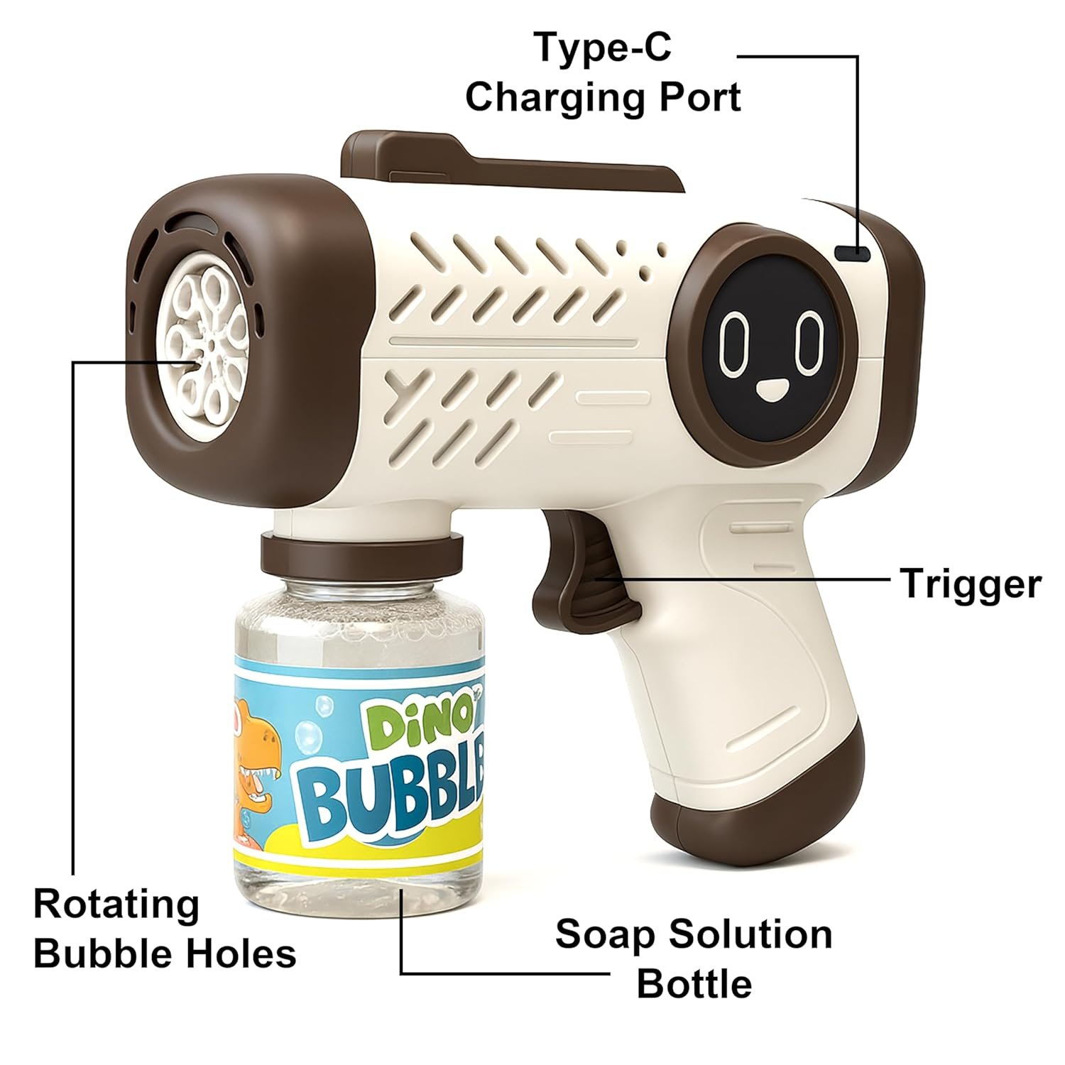 RECHARGEABLE CONVENIENCE – This bubble gun features a built-in rechargeable battery with a Type-C charging cable, offering long-lasting performance for continuous play. Kids can enjoy hours of bubble fun without needing frequent battery changes. Simply charge, attach the solution bottle, and press the trigger for an exciting bubble stream anytime (Do not try to remove the battery).