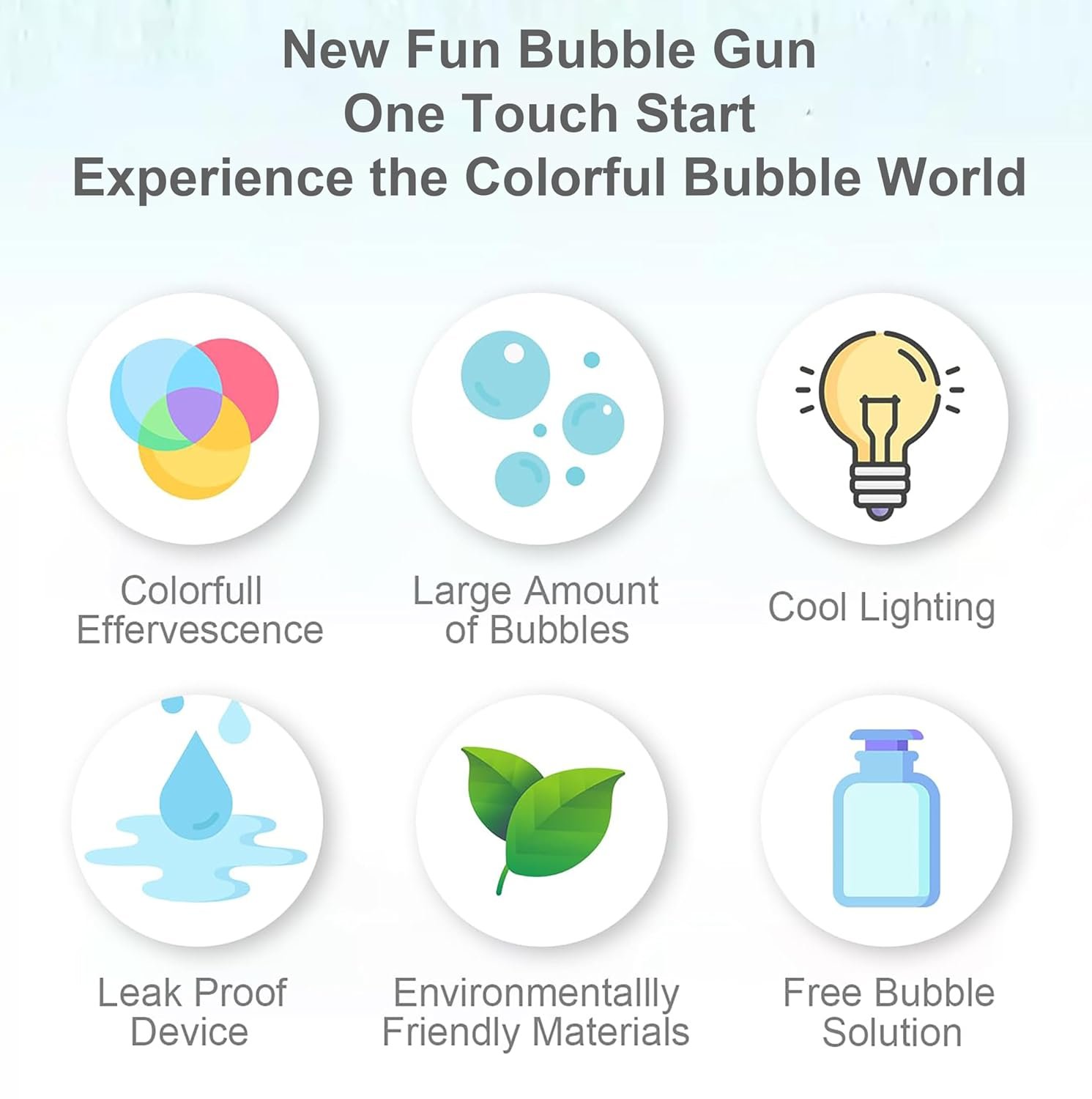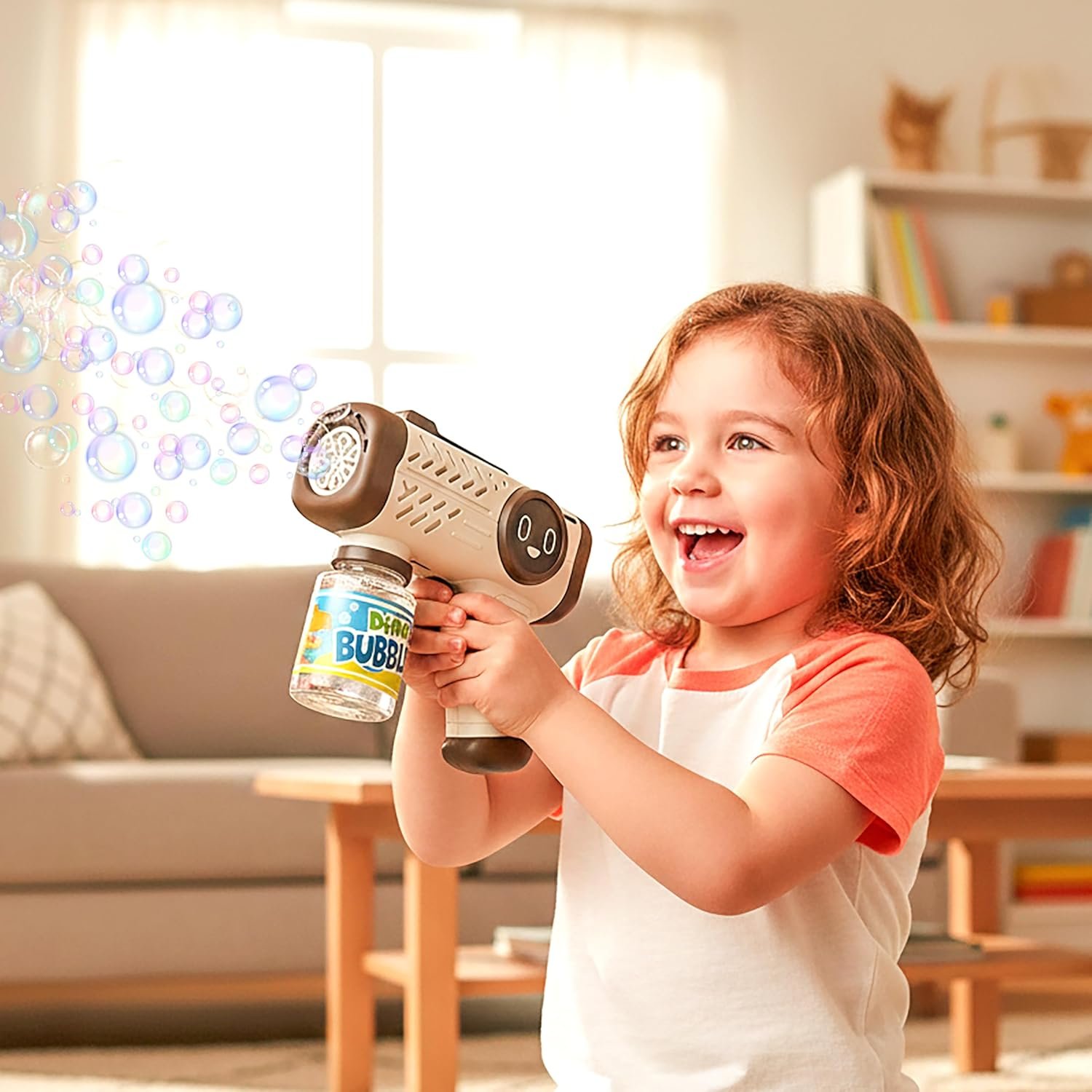 EASY TO USE WITH SOAP SOLUTION – The included soap solution bottle attaches effortlessly to the bubble gun for instant fun. There is no complicated setup required—just connect, press, and enjoy continuous bubbles. This simple operation makes it perfect for toddlers and children, helping create cheerful moments during outdoor activities or indoor play.