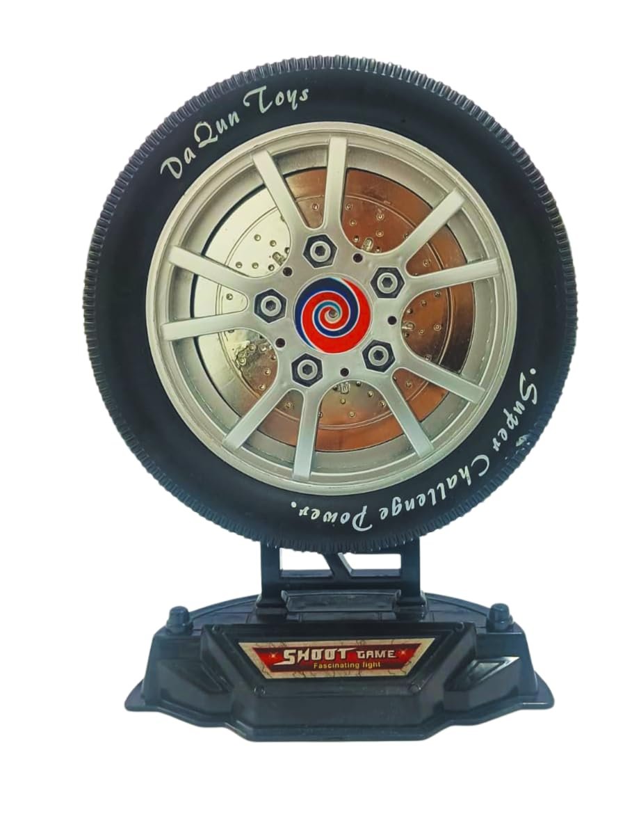 INTERACTIVE TARGET: Features a rotating wheel target with electronic scoring system and light effects for an engaging shooting game experience