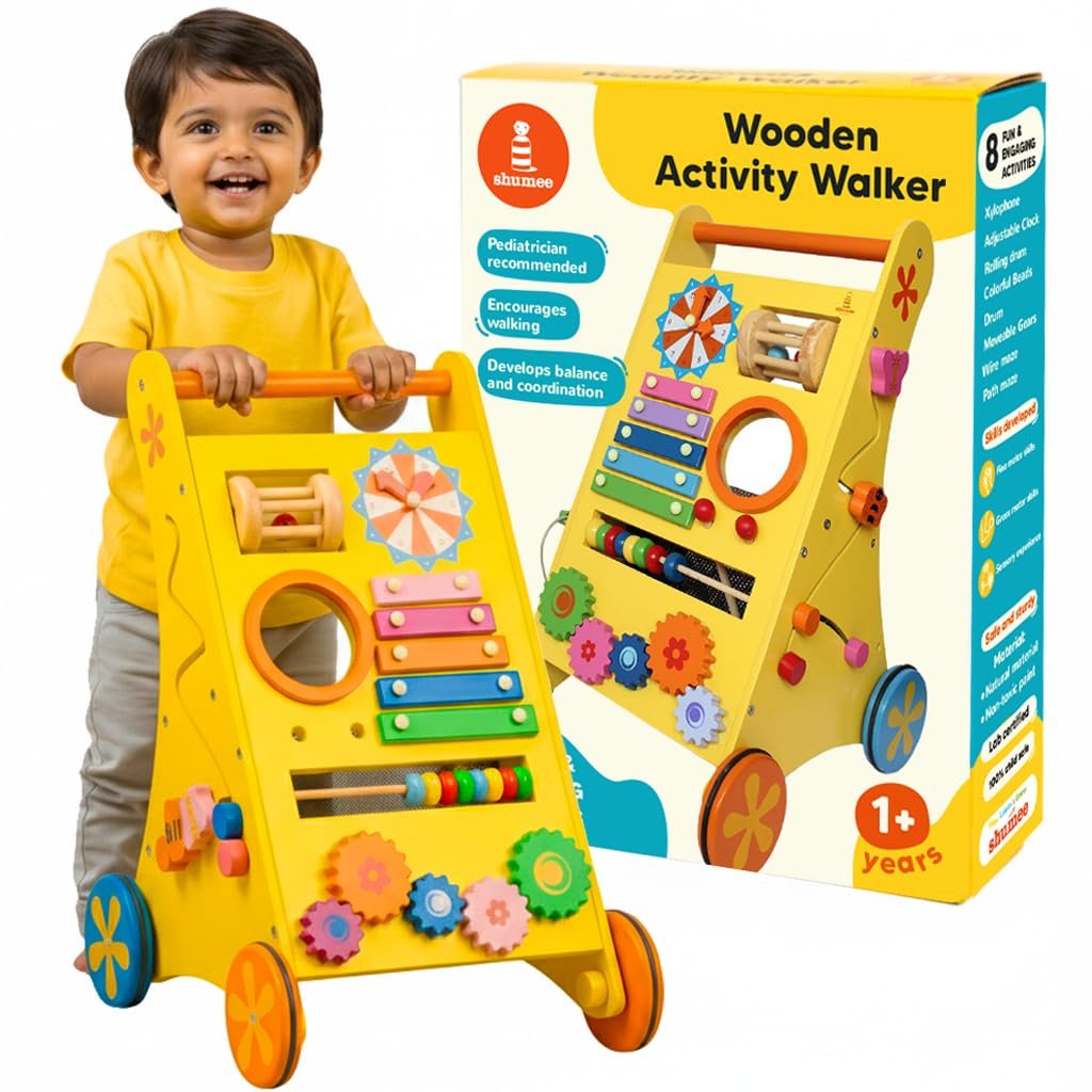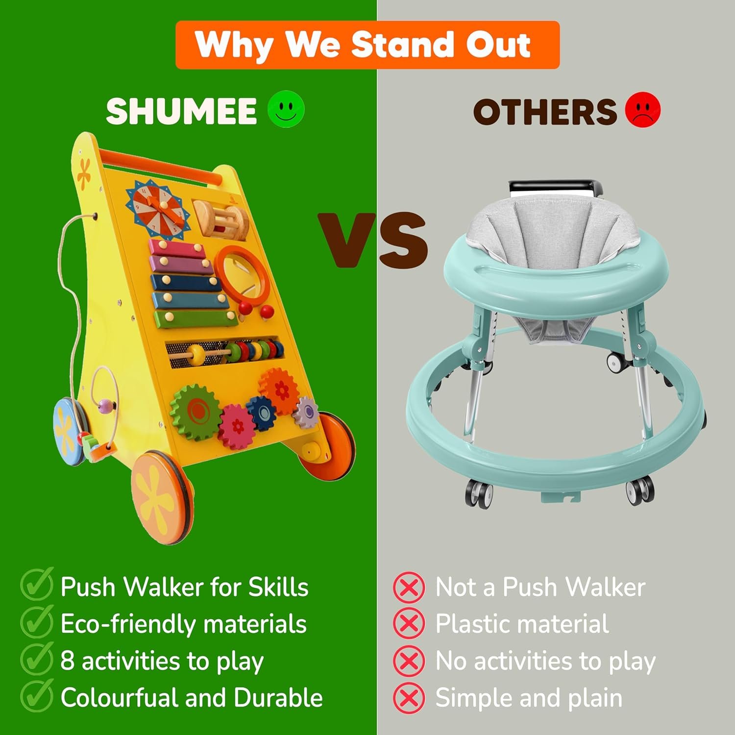 ORGANIZED FUN WITH BUILT-IN STORAGE: Looking for baby toys for 1 year+ that are both fun and practical? Shumee’s walker features a storage space to keep essentials handy while teaching toddlers independence and tidiness early on.